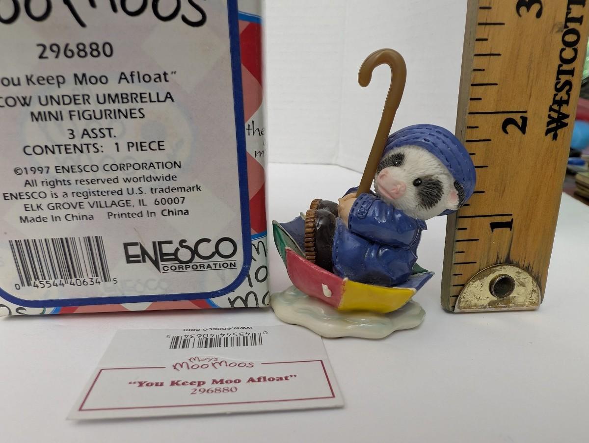 1997 Enesco Mary's Moo Moos You Keep Moo Afloat Figurine Cow In Umbrella With Box #296880