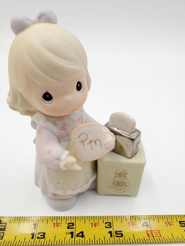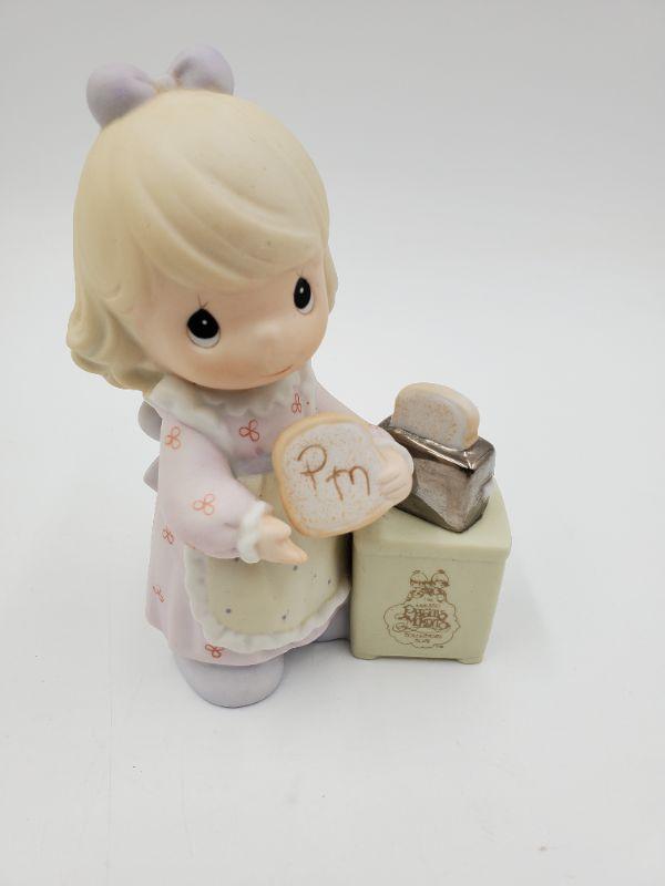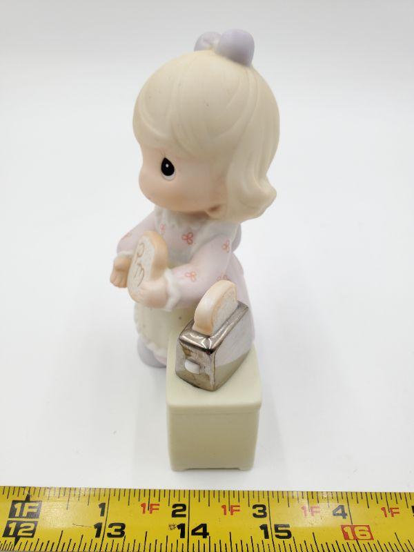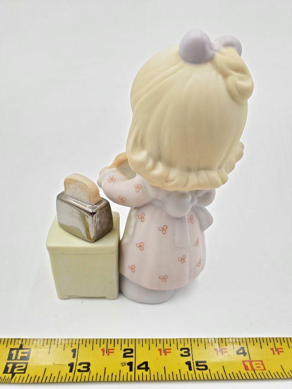 This adorable figure is making Precious Moments toast in a chrome toaster, beyond adorable.