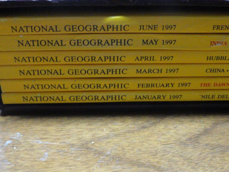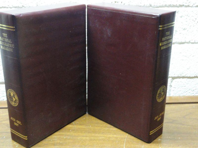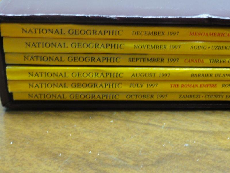 1997 National Geographic Magazine - complete set of 12 with faux leather cases Cases in great condition Books in normal good condition