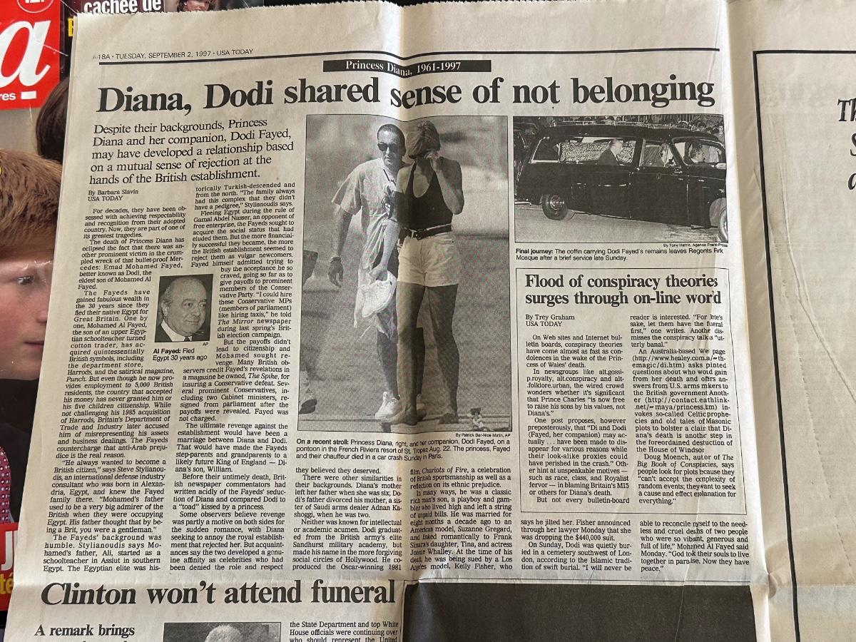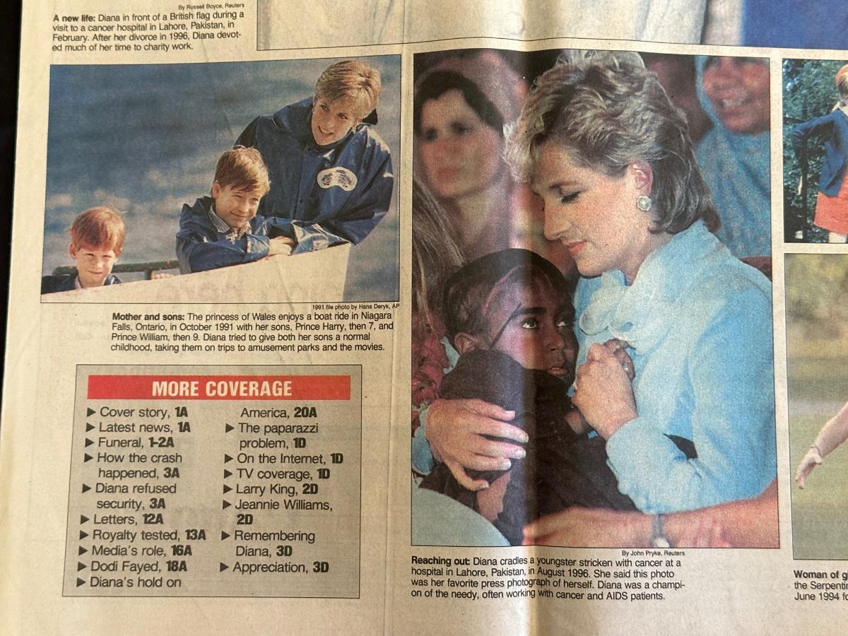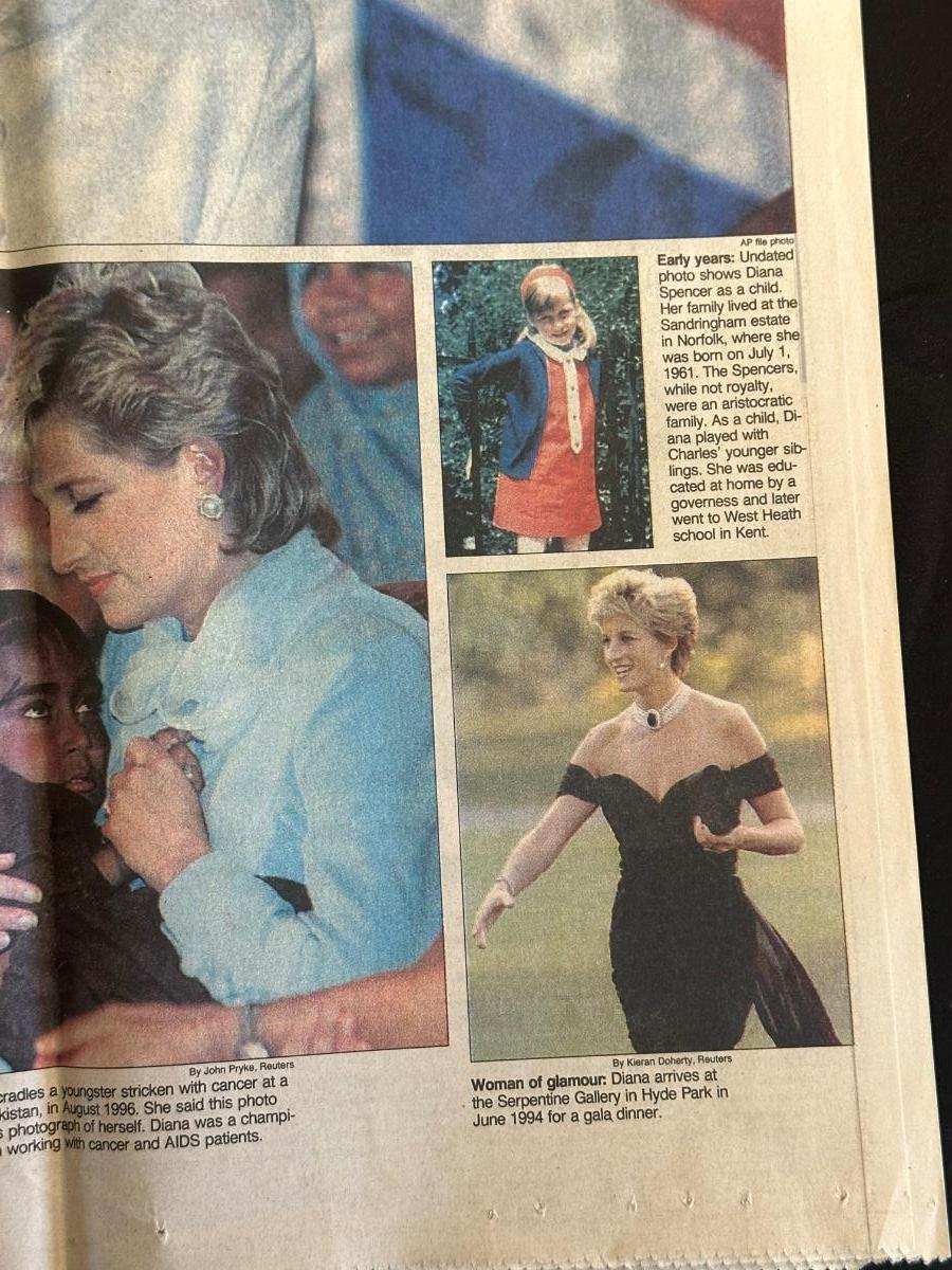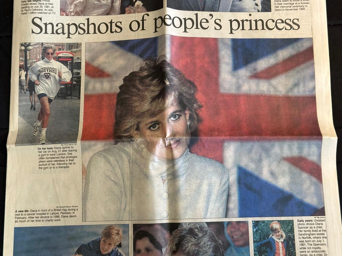 1997 Newspaper Cover Following the Death of Princess Diana, Two Coin Edged Pendants and More Items following the Royal Family