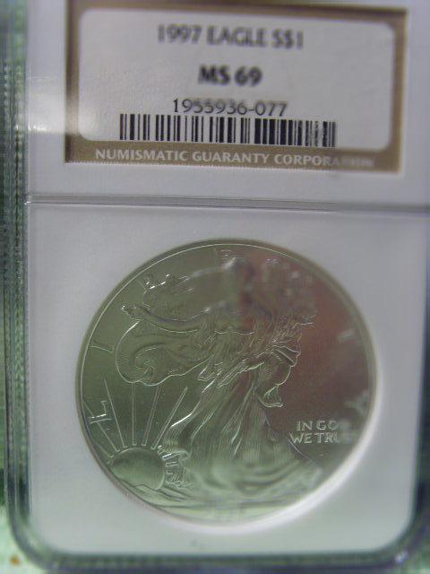 1997 Silver American Eagle Graded at MS 69 Beautiful older Eagle