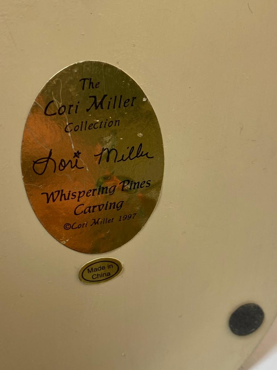 1997 Whispering Pines Carving The Lori Miller Collection Rustic Tall Slender Santa Claus St. Nick Christmas Holiday Figurine. In fair condition, looks like the lantern was broken off and fixed with a wire. Displays well. Tall, about 21" size.