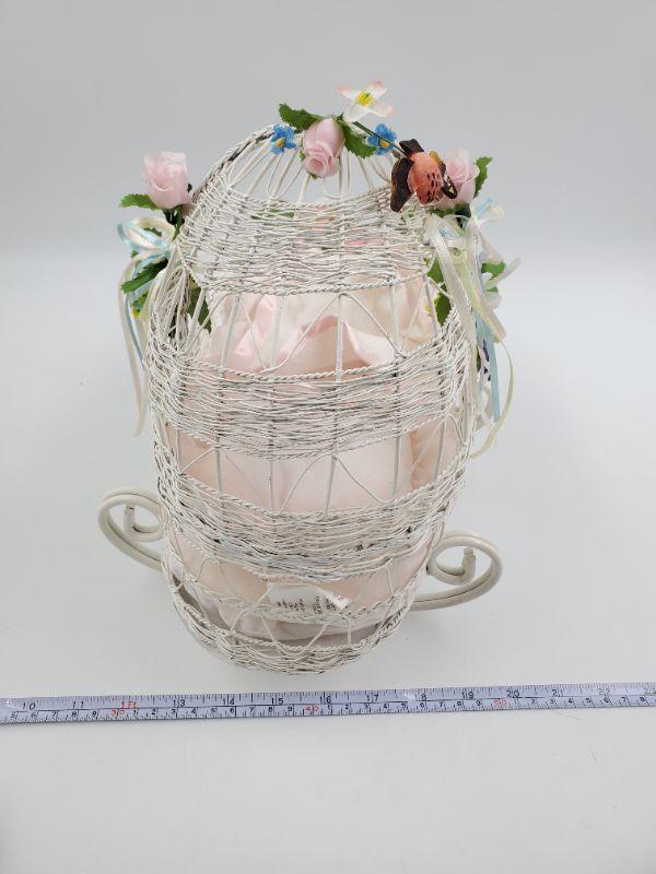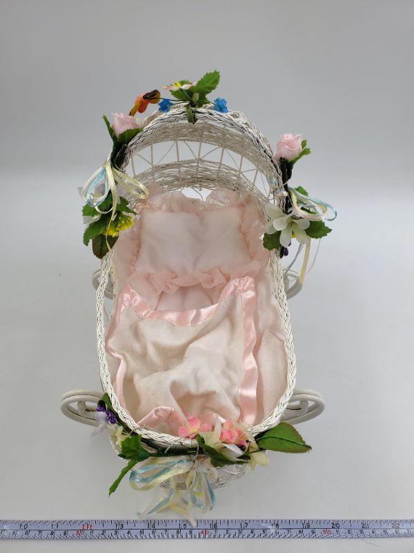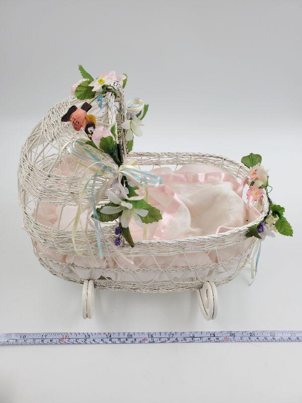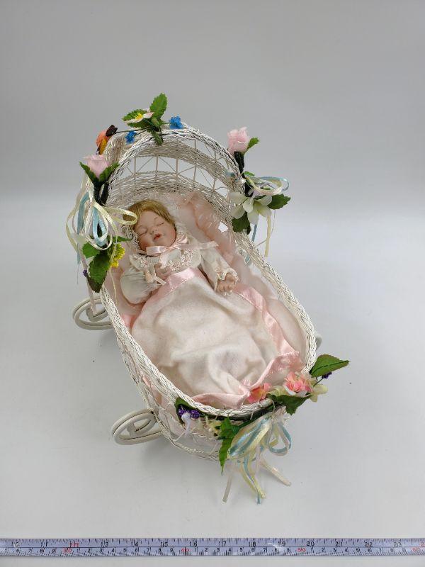 Beautiful wicker inspired cradle, metal...good condition. Ashton Drake hand painted porcelain doll, good condition