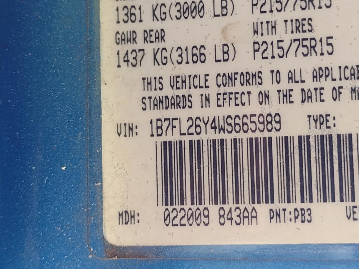 Dodge Dakota V8 Magnum Pickup Truck. 188,550 Miles. VIN 1B7FL26Y4WS665989. Sold as is where it sits. No offers of warranty or guarantee that all parts or pieces are present. Some rust visible as shown. Was recently driven as everyday vehicle. This is a cash only payment and eligible for 12% buyer's premium reflected on final invoice. Clean title. No open title transfers. No sales tax to be reflected on final invoice.