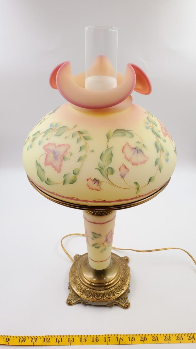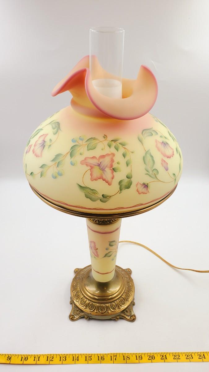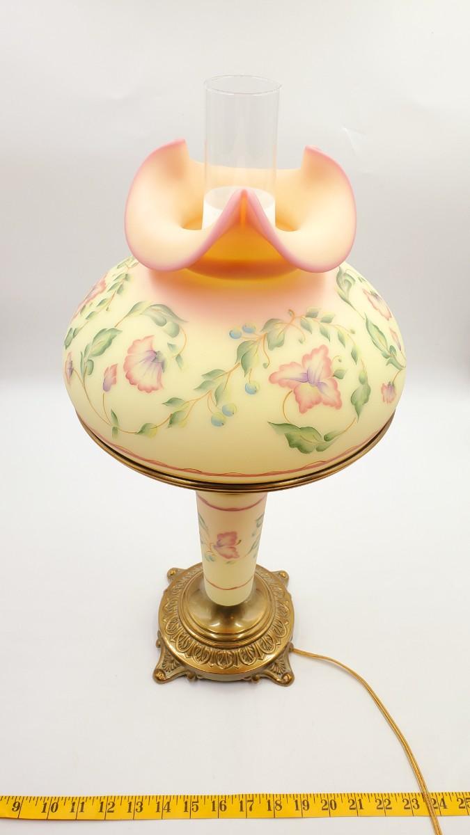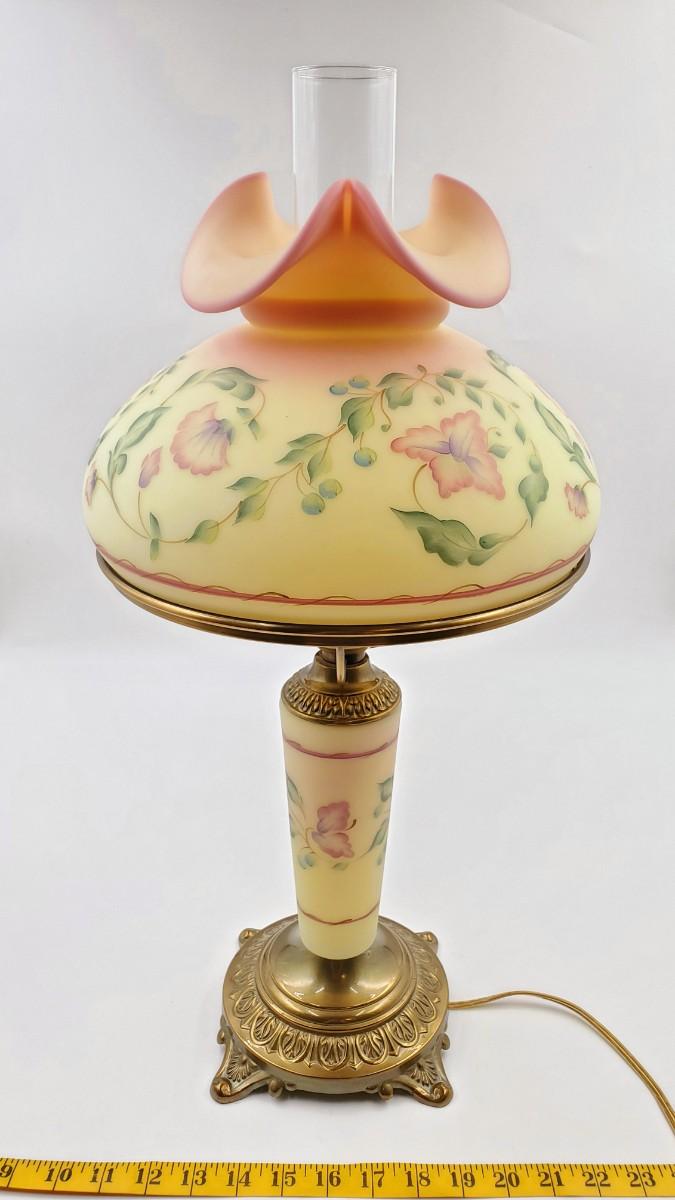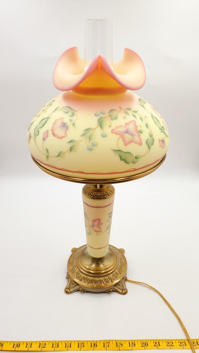 1998 FENTON BURMESE JACOBEAN FLORAL TABLE LAMP