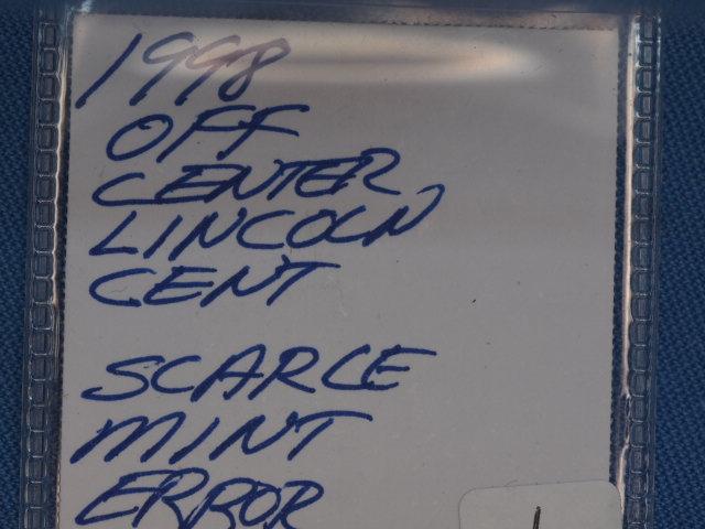 1998 Off Center Lincoln Cent Scarce Mint Error Coin. If you collect error Coins this is a good one to have