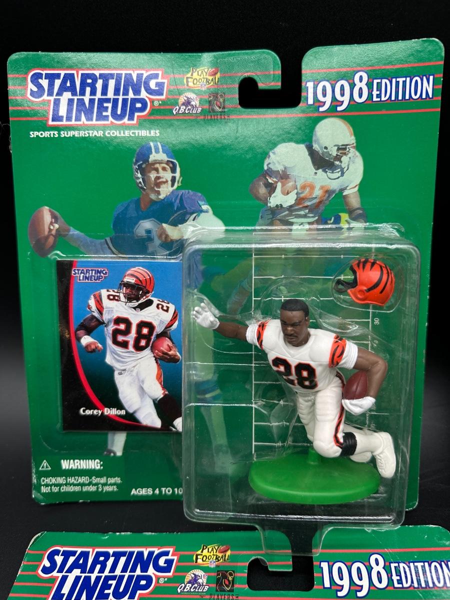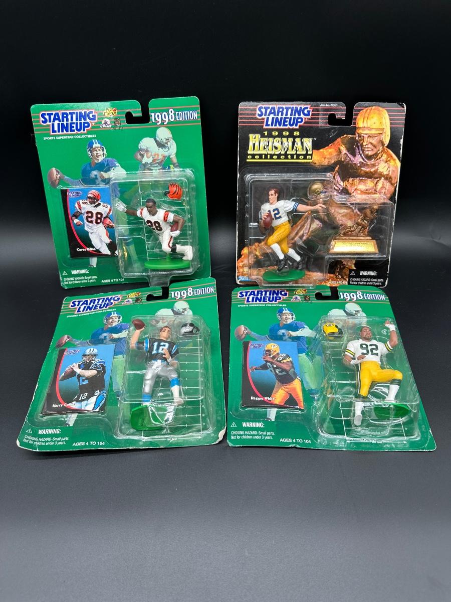 1998 Starting Lineup NFL Figure Lot – Corey Dillon, Kerry Collins, Reggie White + Heisman Staubach