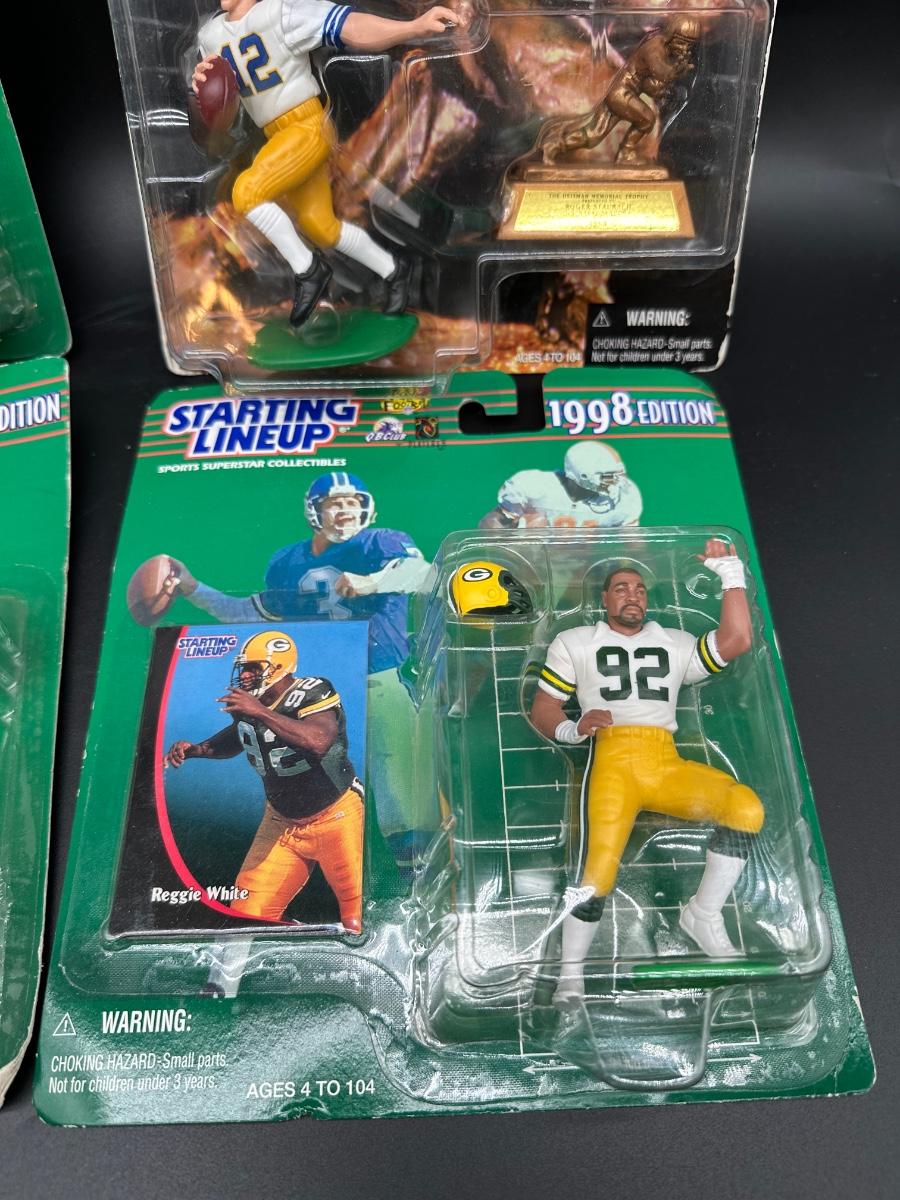 Nice vintage Starting Lineup football figure lot, all 1998 Edition, factory sealed on original cards.