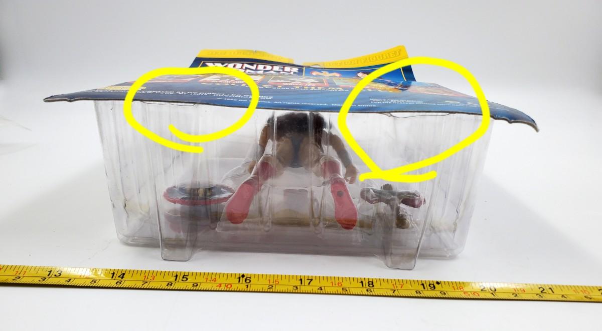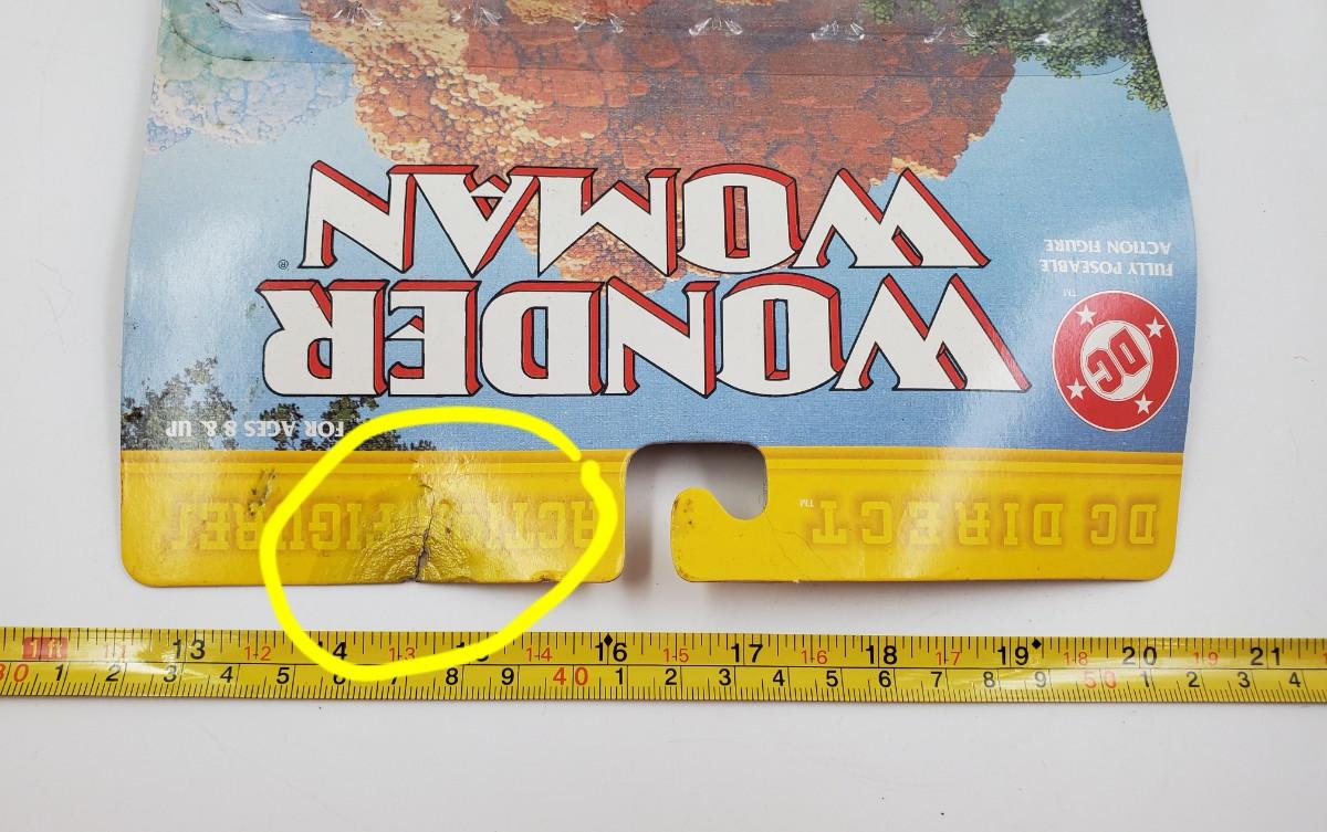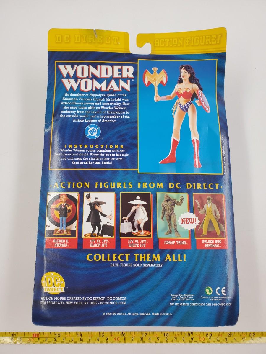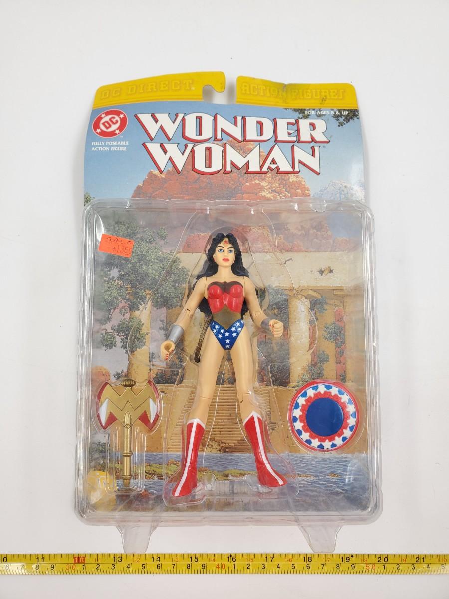 1999 DC Direct Action Figures Fully Poseable Action Figure Wonder Woman, sealed package. Some damage to package, cardboard at the top and the plastic has begun to pull away from the cardboard near the bottom, please see photos.