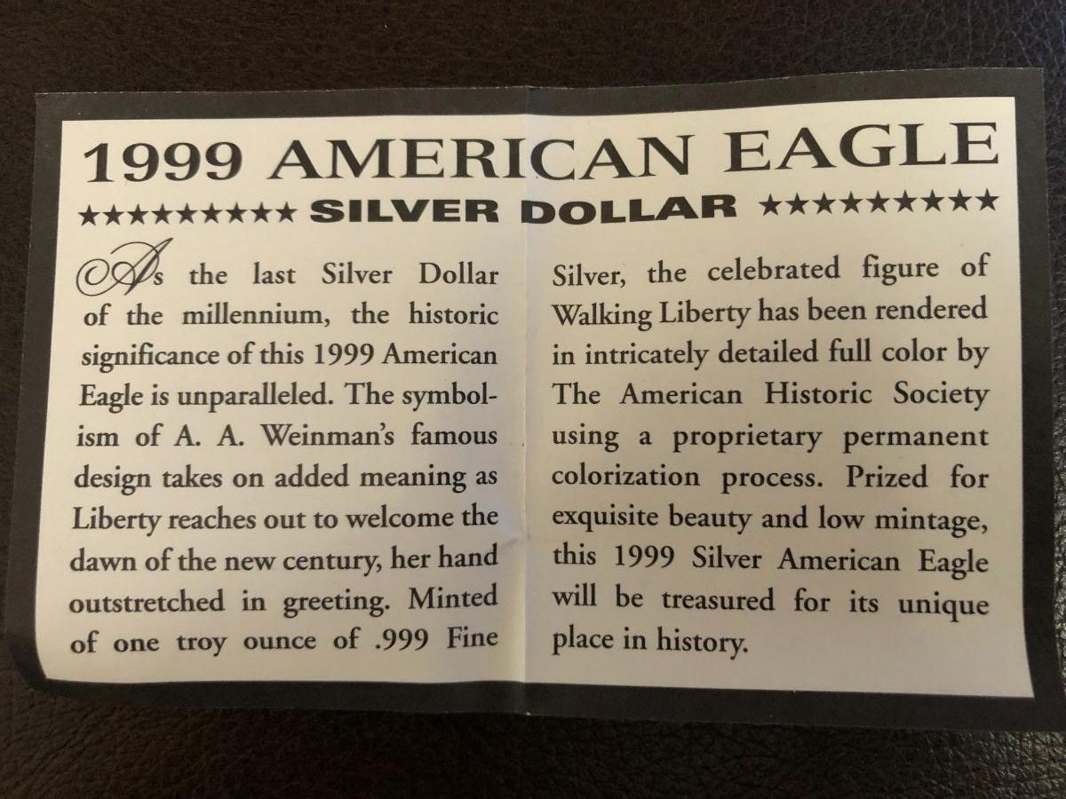 1999 American Eagle Colorized 1 oz Fine Silver-One Dollar Lot #0797