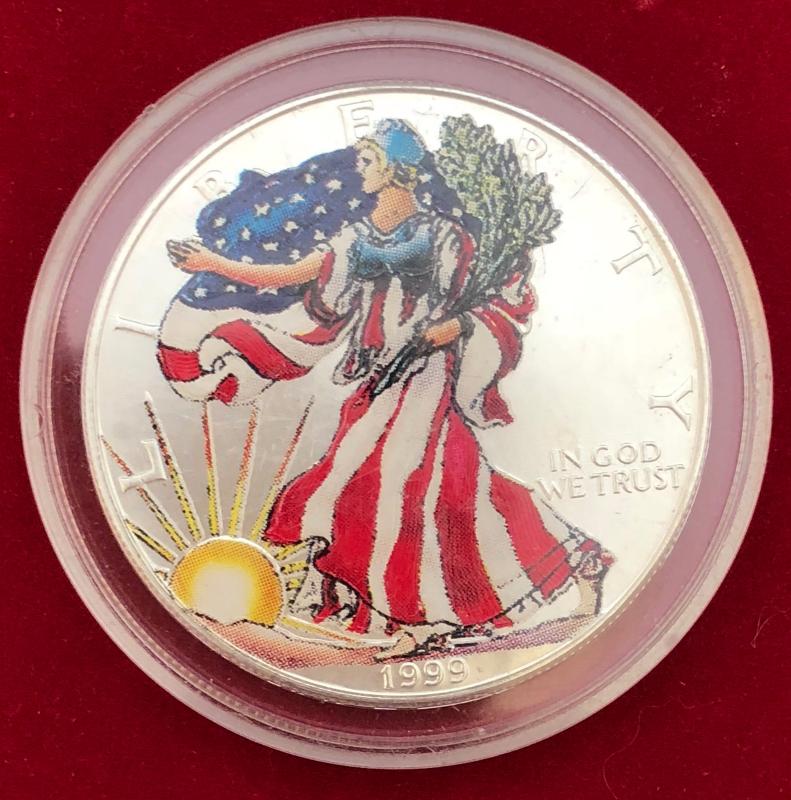 1999 American Silver Eagle Painted 1 Troy Ounce .999 Fine Silver AU