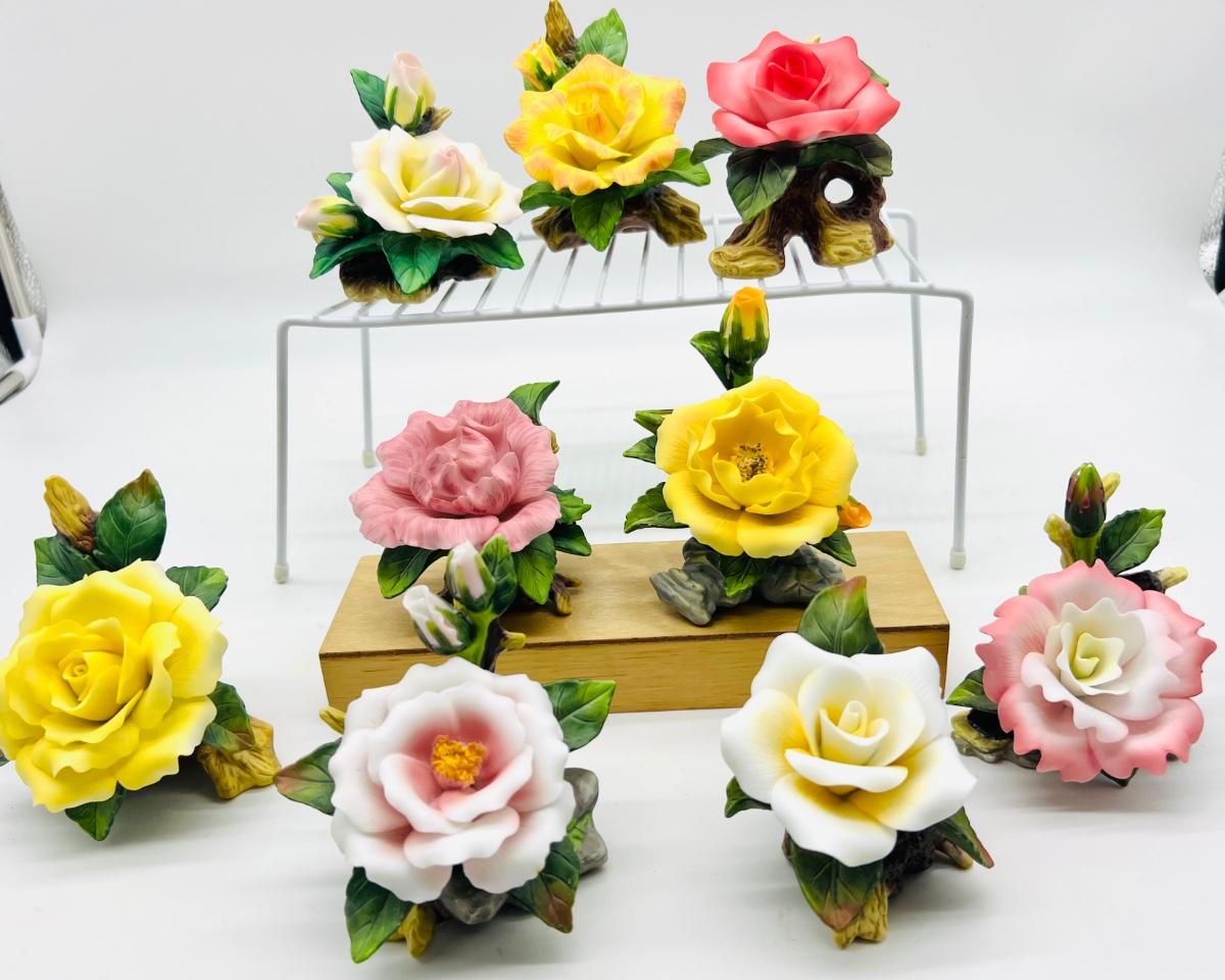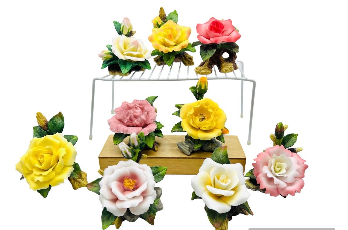 9 ceramic roses in the box marked from 1999. Pretty colors!