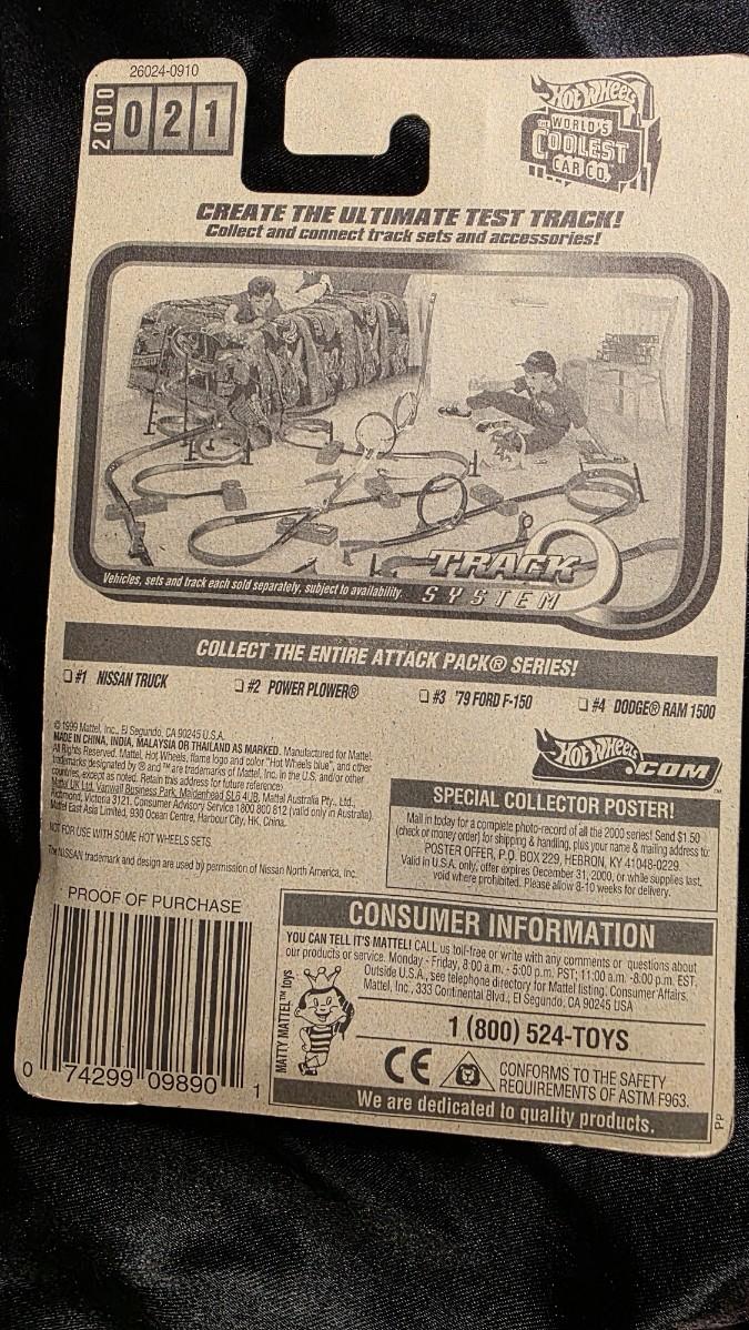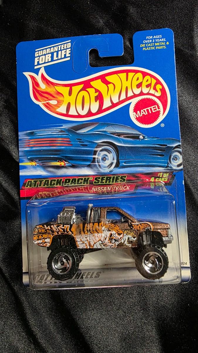 Still factory-sealed on its original card, blister crystal-clear, graphics screaming late-’90s attitude, this series-opener has become one of the toughest Attack Pack pieces to find mint. For monster-truck maniacs, graffiti chasers, or anyone completing their 1999–2000 run, this is the alpha of the pack—the one that started the rampage.