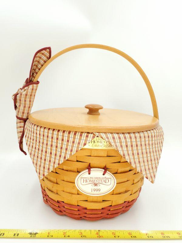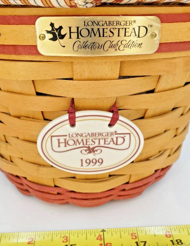 1999 Longaberger Homestead Collector's Club Edition...plastic insert, brown plaid cloth liner and bow.