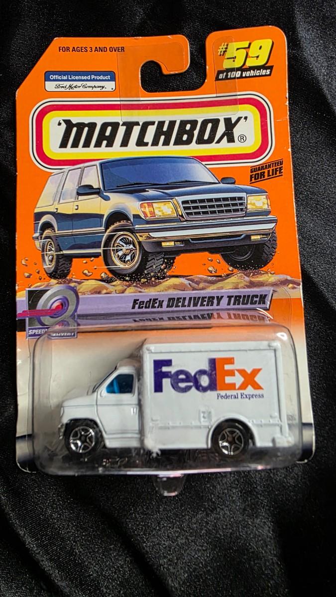 1999 Matchbox #59 of 100 FedEx Delivery Truck | White w/ Purple-Orange Livery | Sealed Original Orange Card | Official Federal Express Diecast | Vintage Working Vehicle Gem