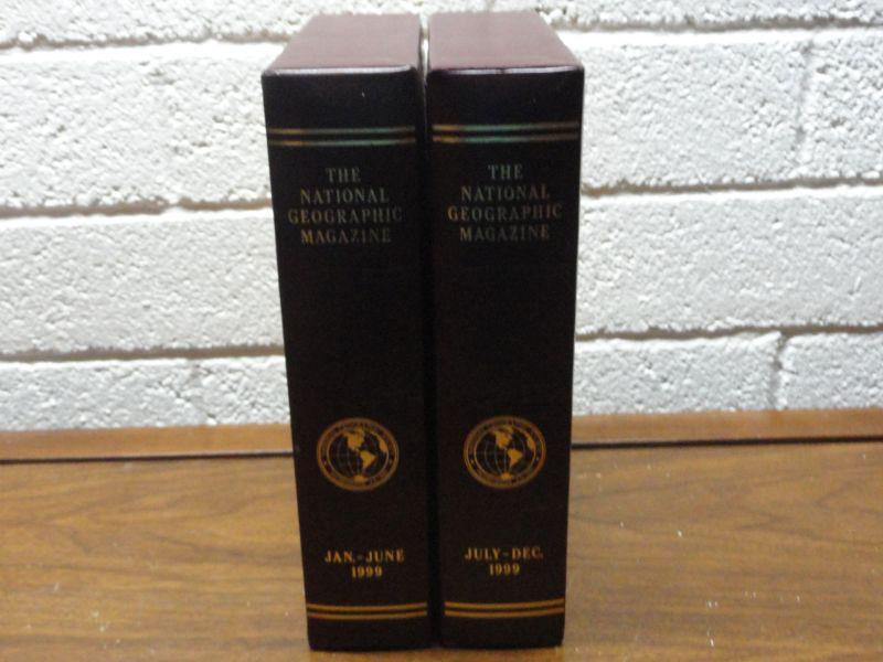 1999 National Geographic Magazine - complete set of 12 with faux leather cases Cases in great condition Books in normal good condition
