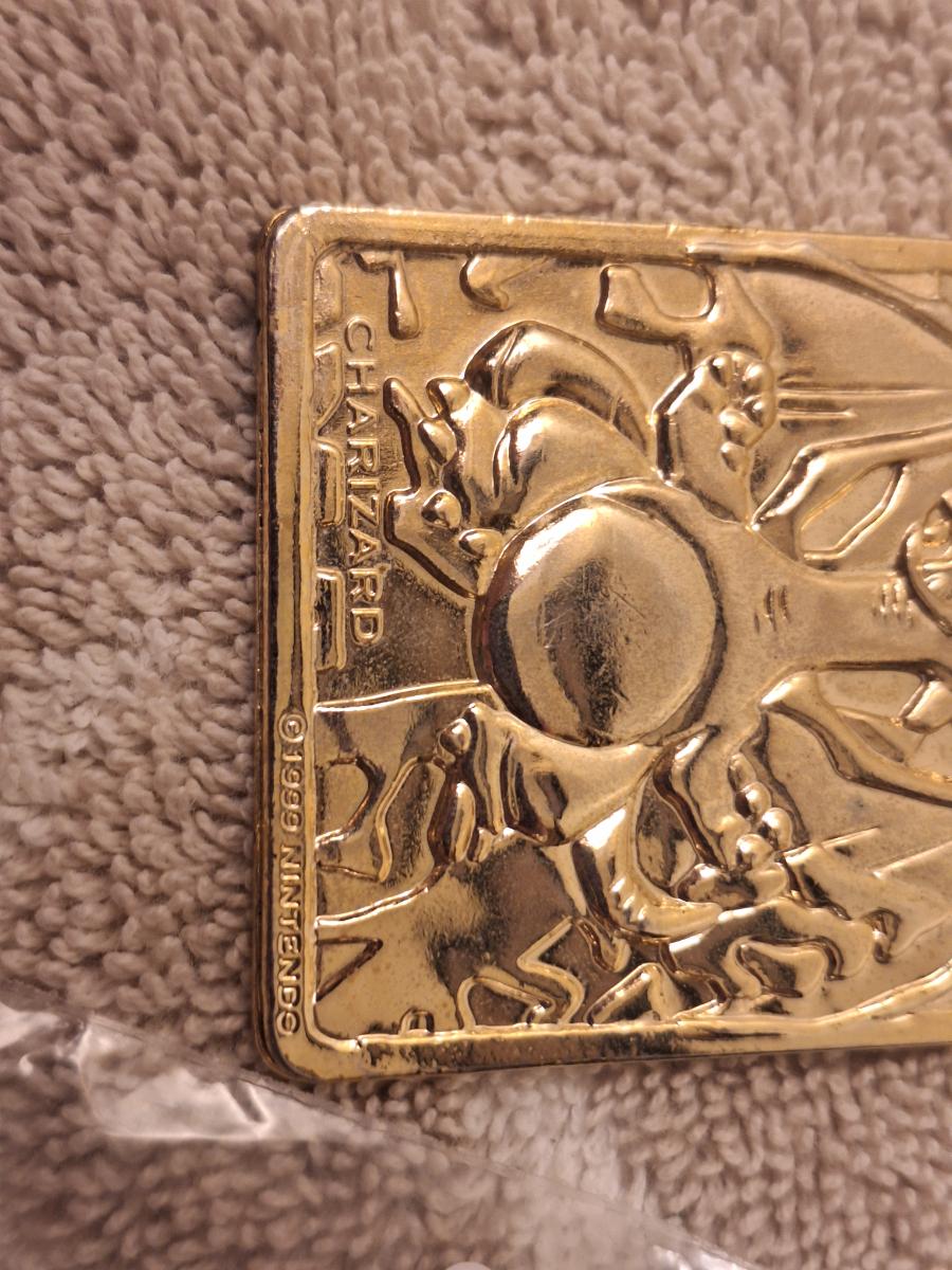 1999 Nintendo Charizard 23K gold-plated trading card, originally a promotional item from Burger King.