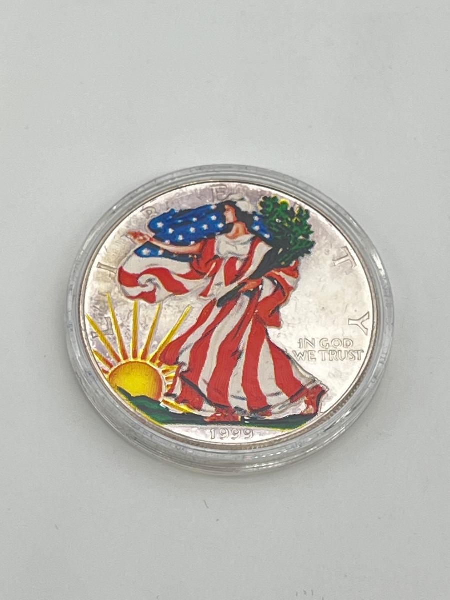 1999 Painted American Eagle 1oz 999 Fine Silver Dollar