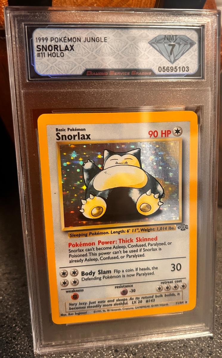 Up for sale is one 1999 Pokemon Jungle Snorlax #11 Holo. It is graded a 7 NMT by DSG. See photos for more details.