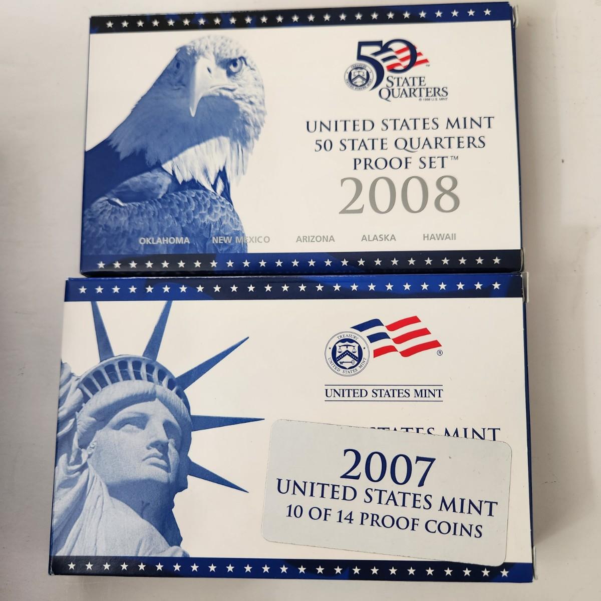 1999 -2007 have 2 packs in each box 5 quarters issued for the year, then the penny nickel dime .50 and $1 coins in the other.