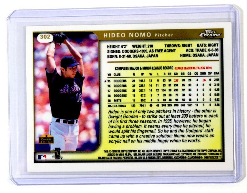 HIDEO NOMO 1999 TOPPS CHROME REFRACTOR #302 METS SP INSERT BASEBALL CARD - MINT