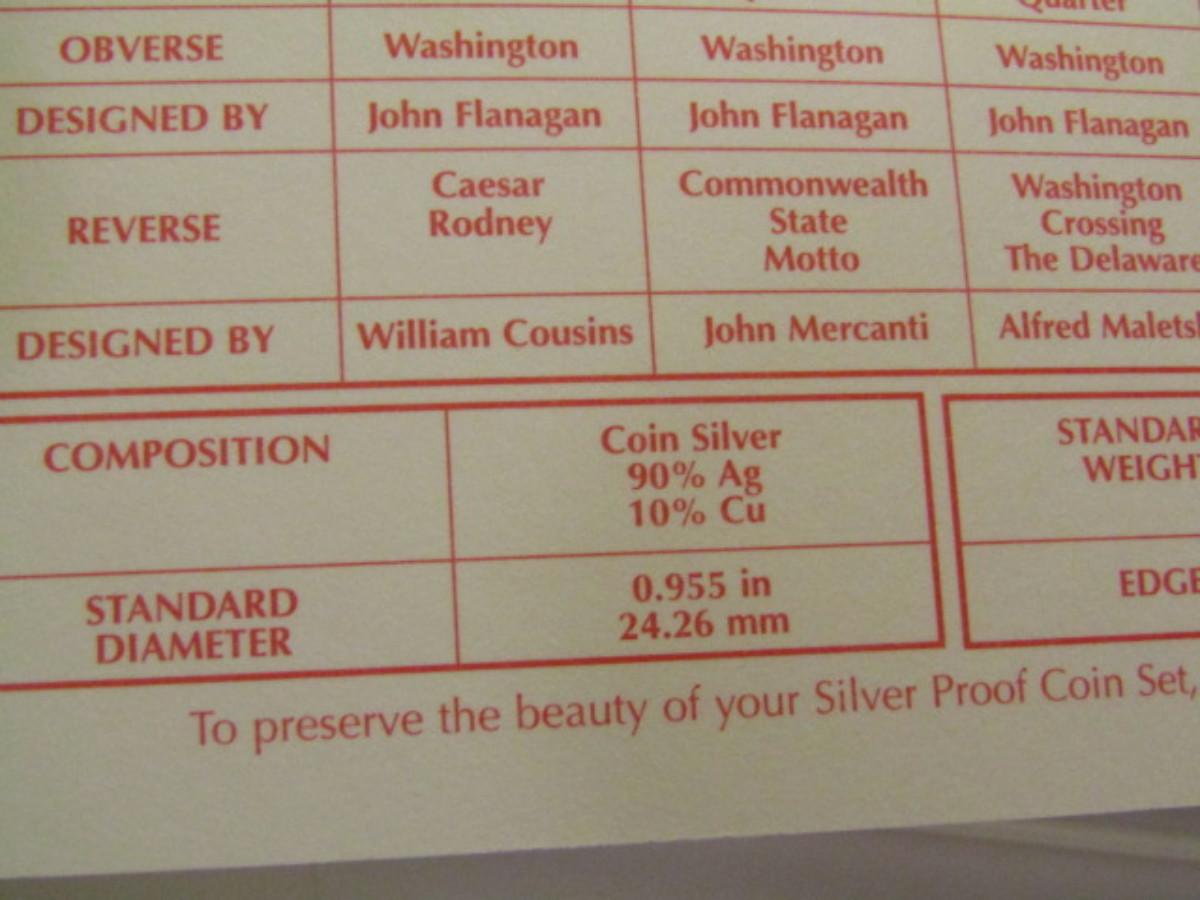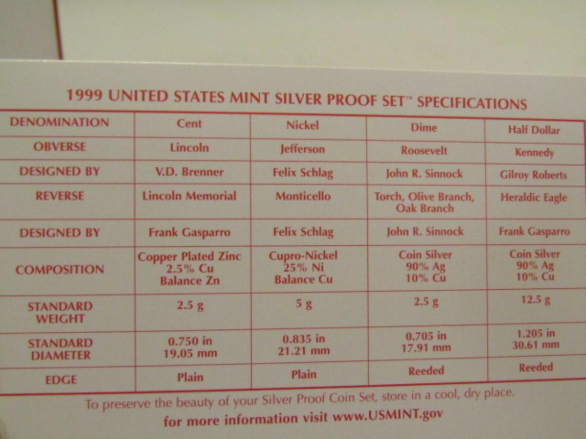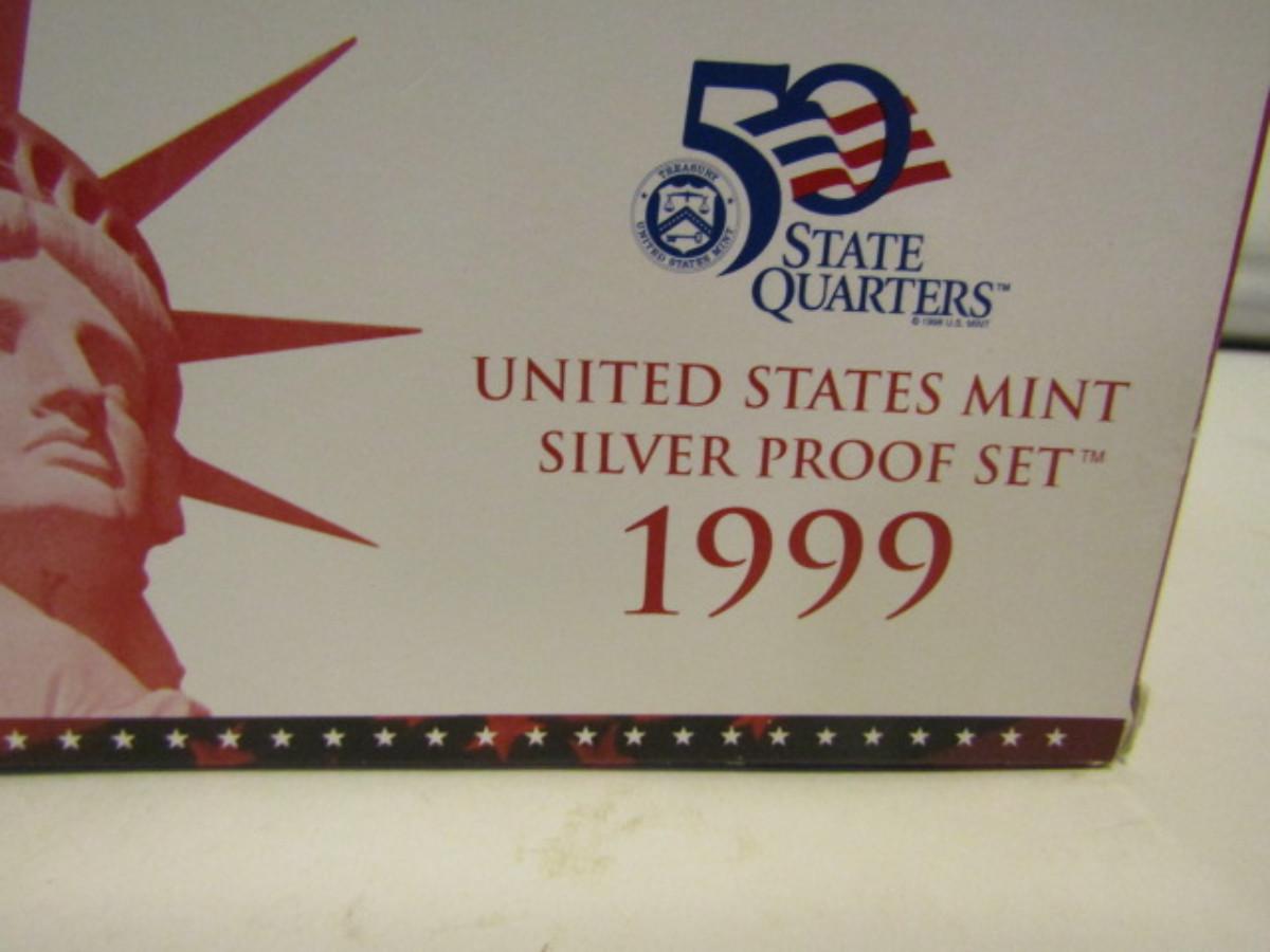 1999 US Mint Silver Proof Set- 5 State Quarters, Penny, Nickle, Dime, Half Dollar. Choice B. Please see all pictures for description of sterling silver content.