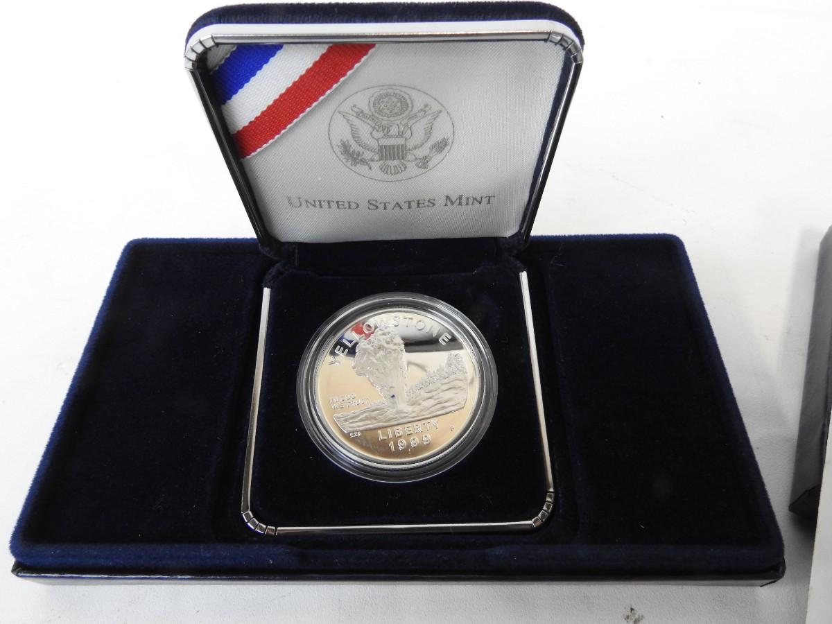 1999 Yellowstone National Park Silver Dollar with Case, Box, and COA