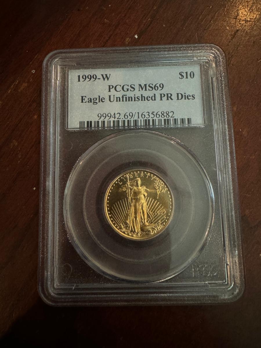 1999-W PCGS MS69 10$ Gold EAGLE UNFINISHED PR DYES