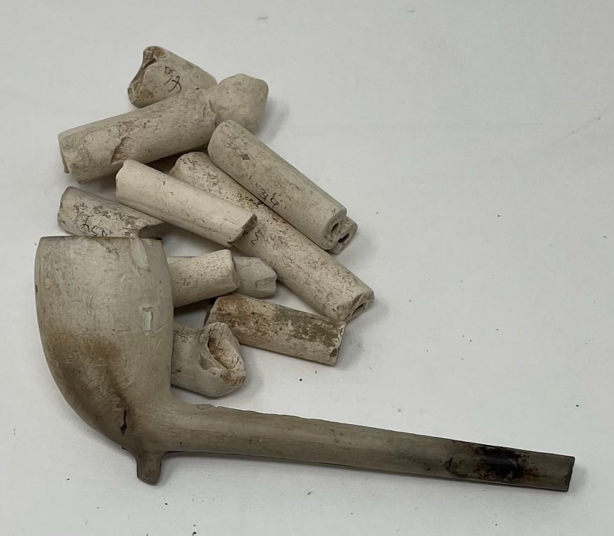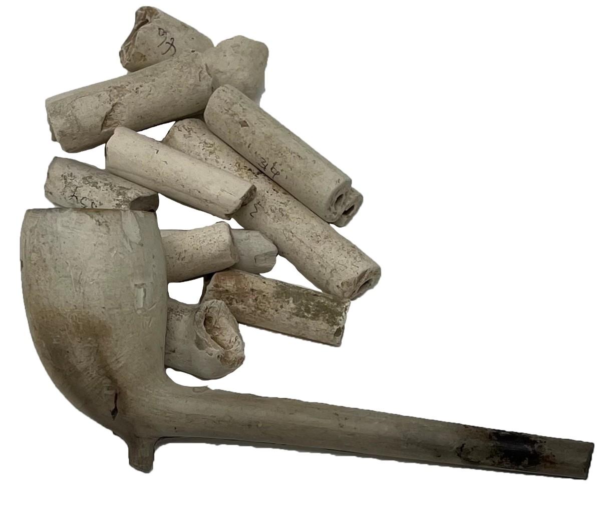 Description: 19C Clay pipe and FragmentsMaterial: ClayMeasurement approximate: 4.5 x 2 (Inches)