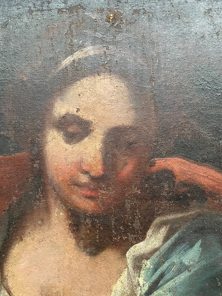 Description: 19C Master oil painting/ Female portrait/ UnframedMaterial: Oil on canvasMeasurement approximate: 22 x 18 (Inches).