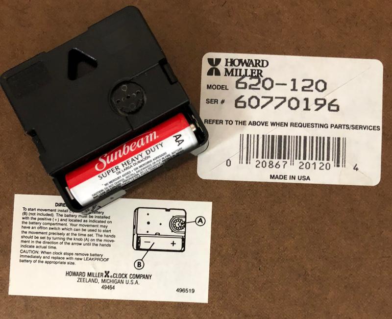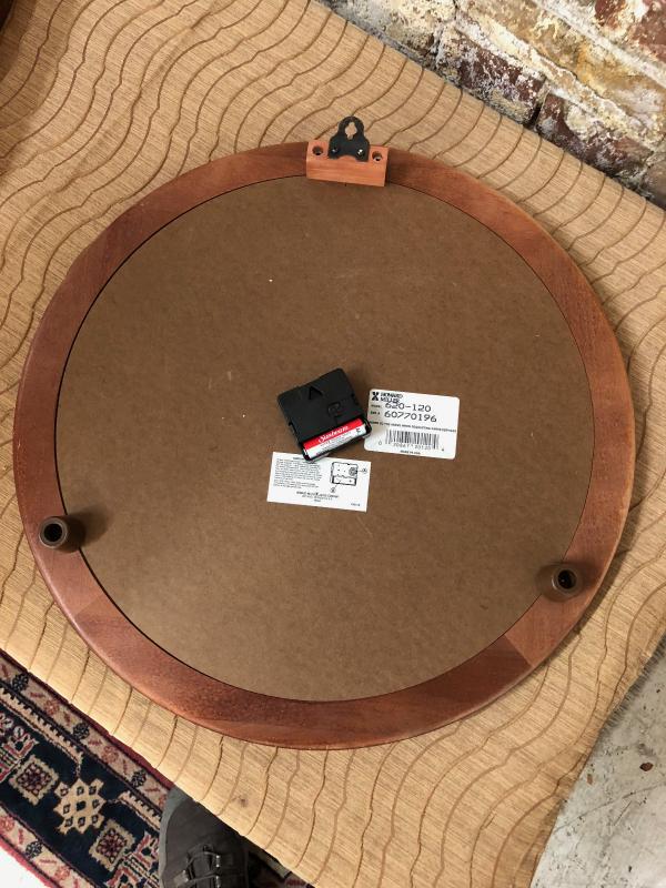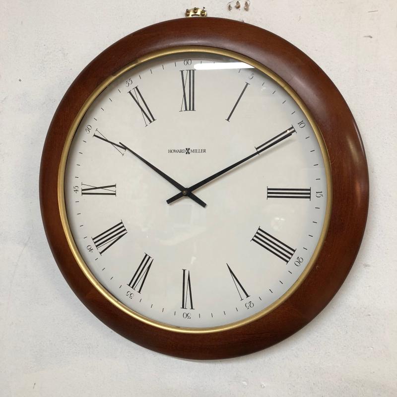 Light use on this large 19" Howard Miller quartz wall clock...1xAA...Working well...Model #620-120....Wood body...Roman numerals...