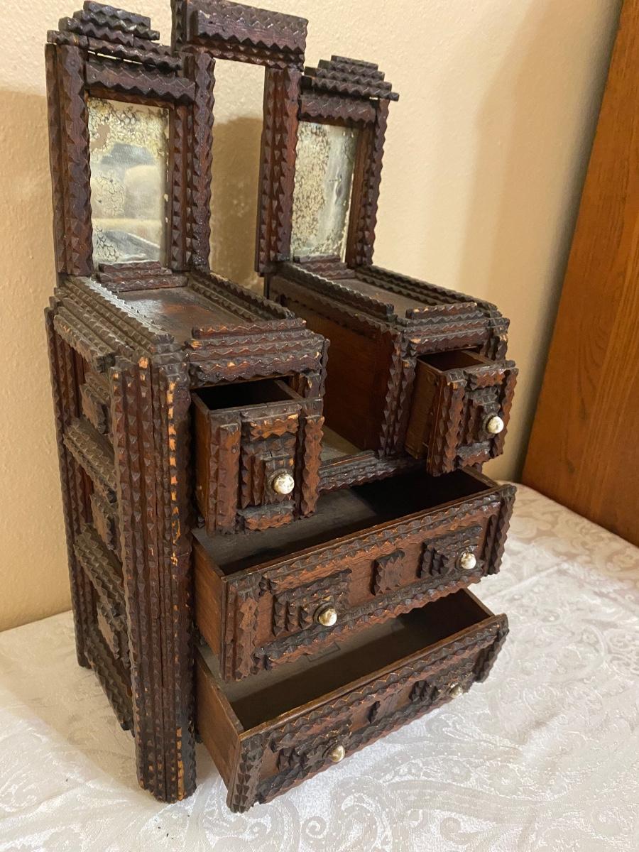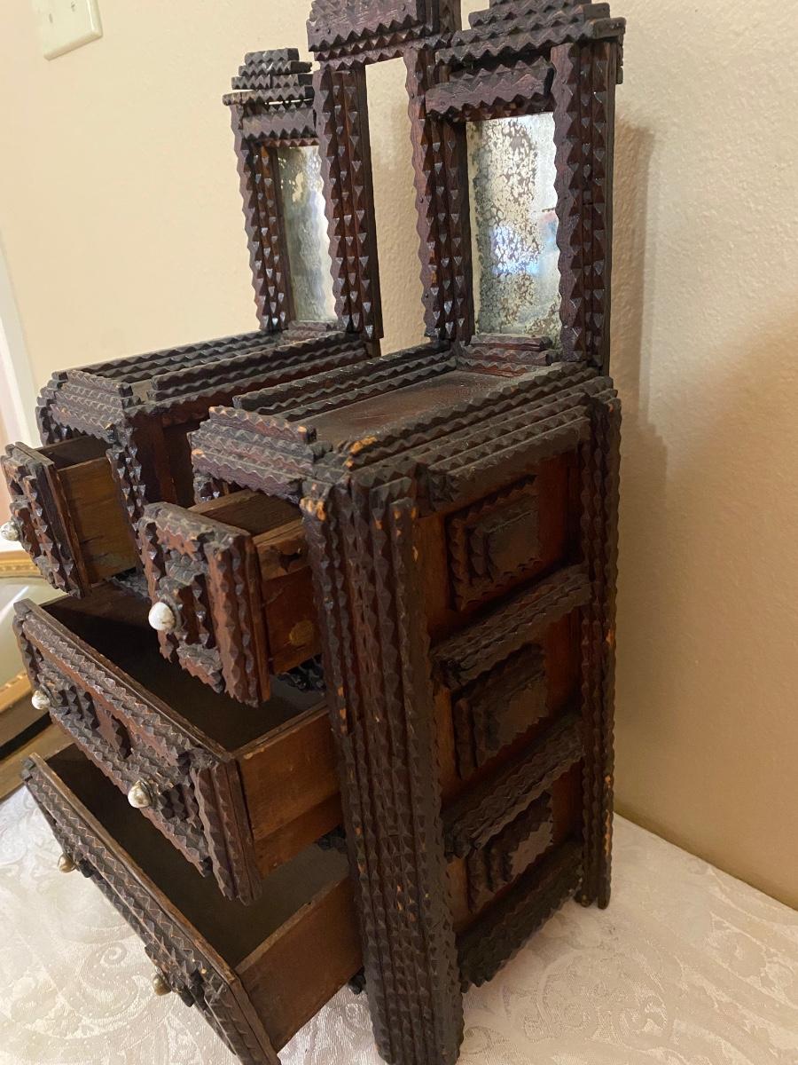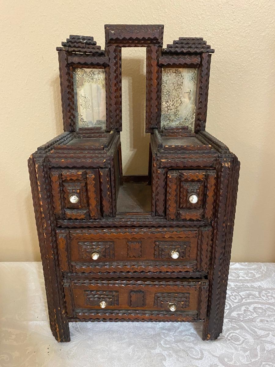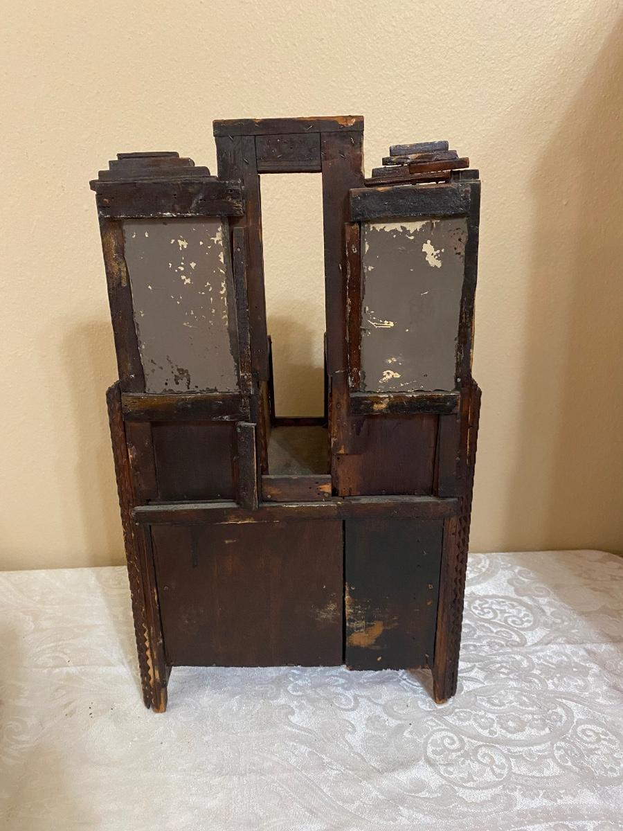19th century Antique “Tramp Art” miniature mirrored dresser or vanity