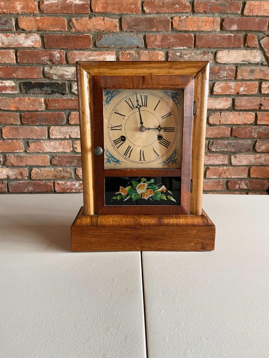 19th Century Antique Wood Framed Antique Rectangular Mantle Clock.