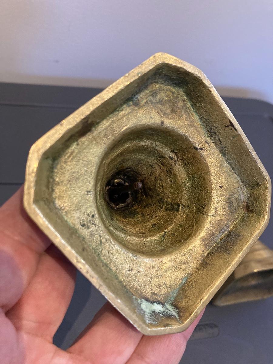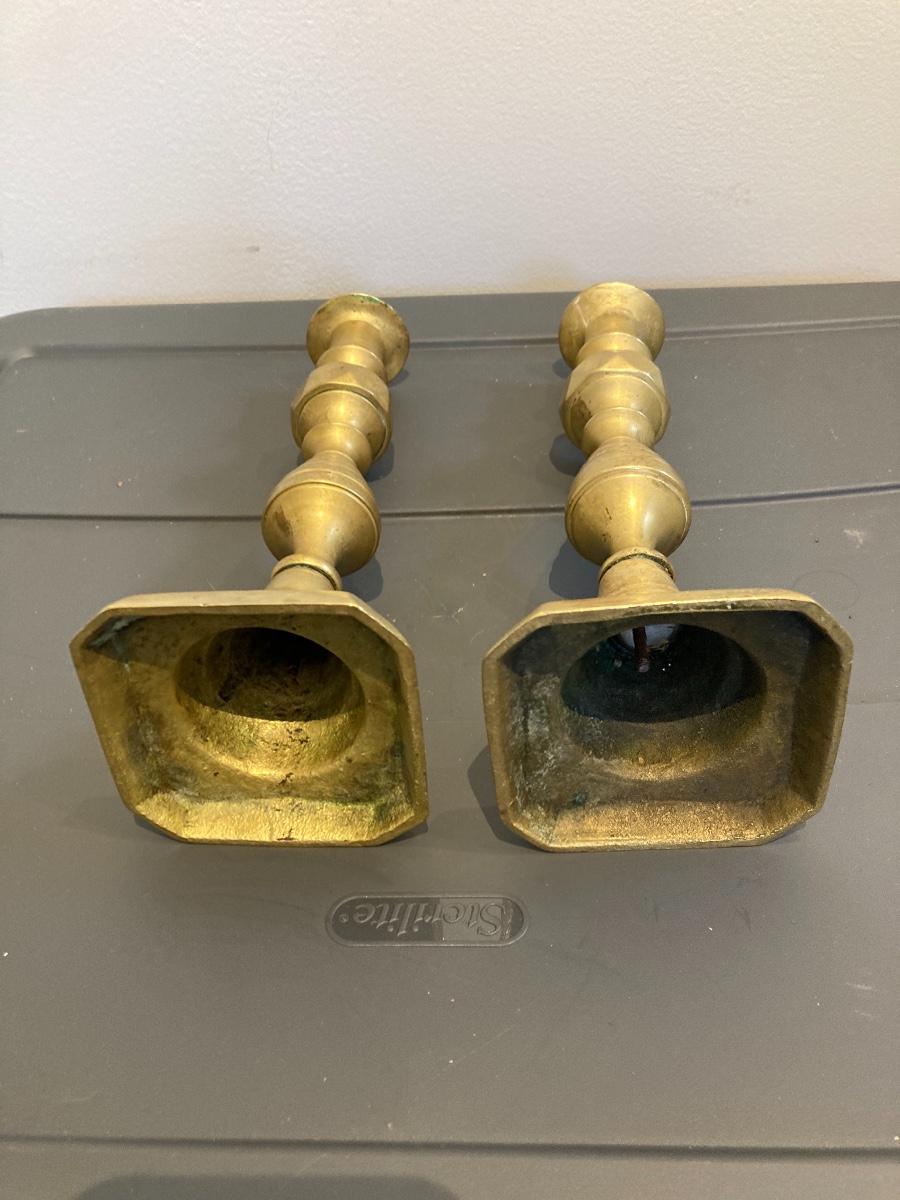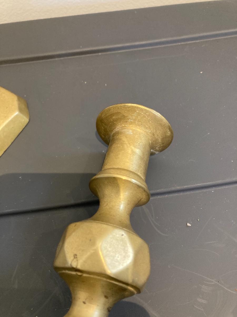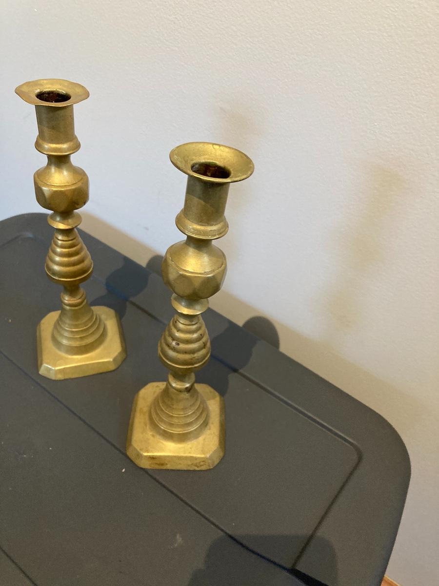 19th century Brass Beehice and Diamond Candleholders 11.5”
