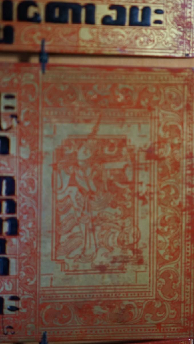 beautiful kammavca Burmese prayer book . the lettering is on red lacquer panels. accented with devs and celestial beings. Esitmated approximate age late 19th century 1880