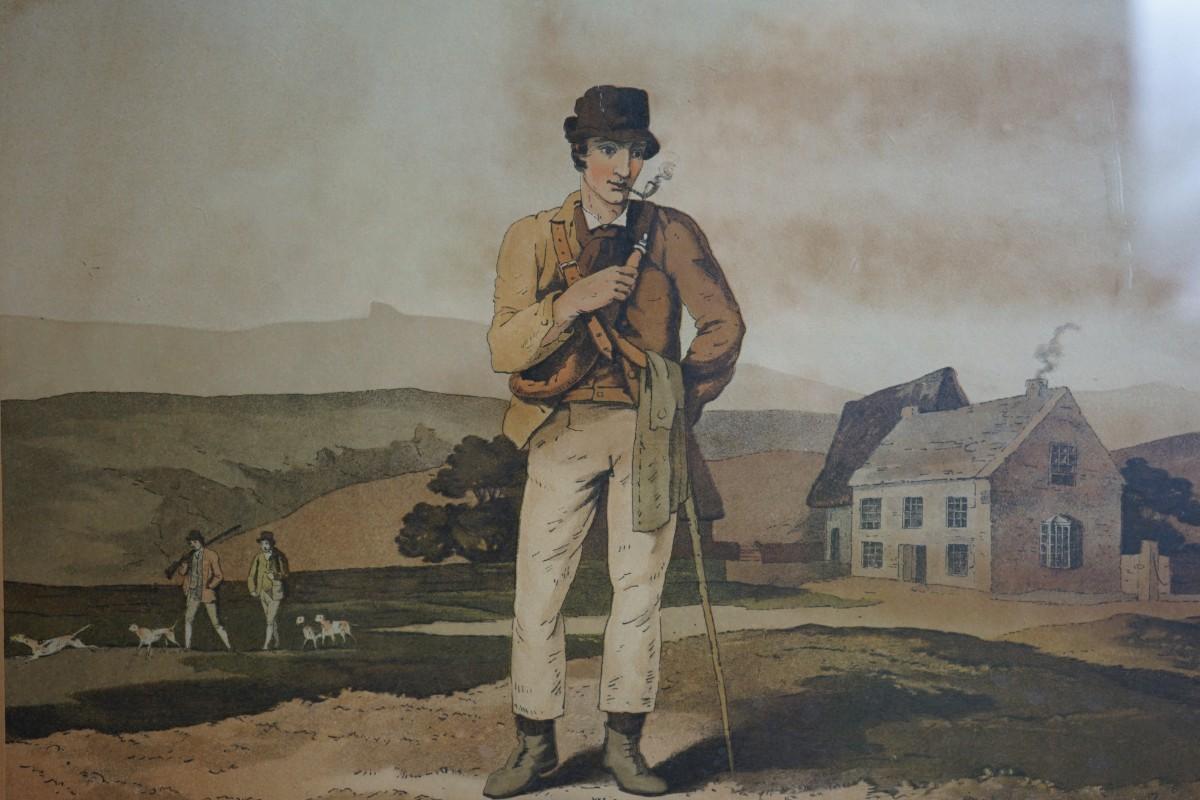 19TH CENTURY ENGRAVING OF YOUNG MAN TRAVELER FRAMED