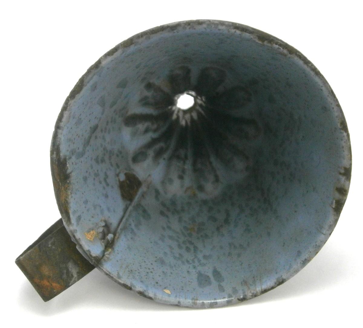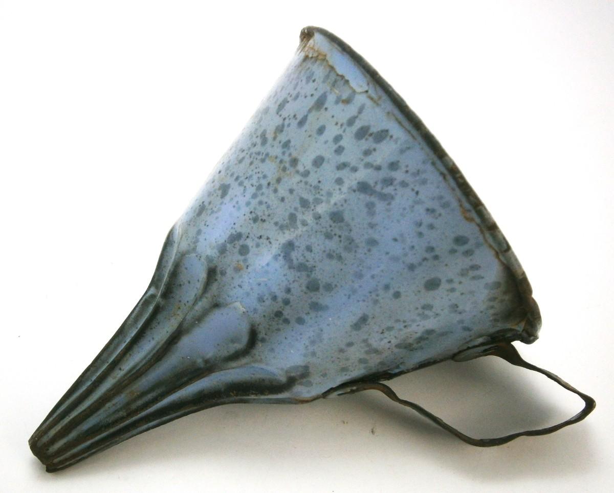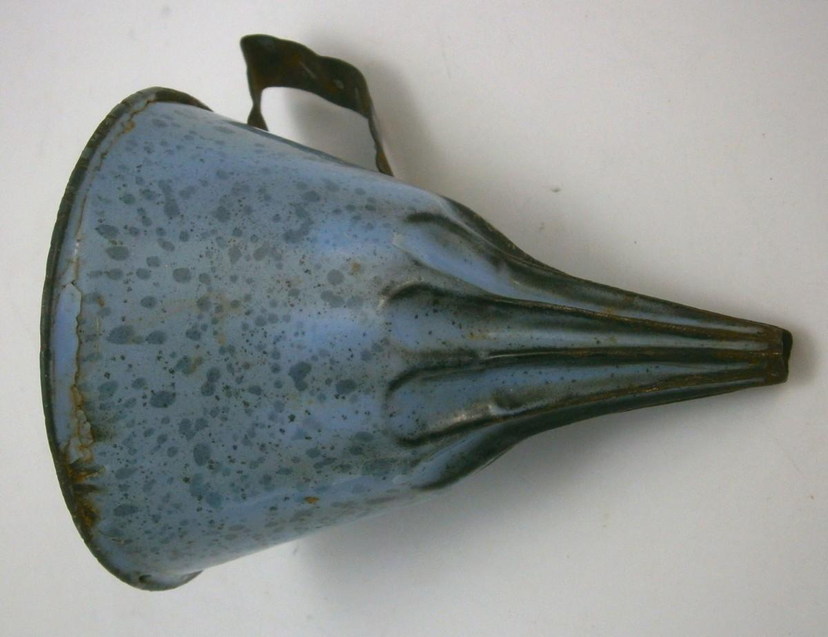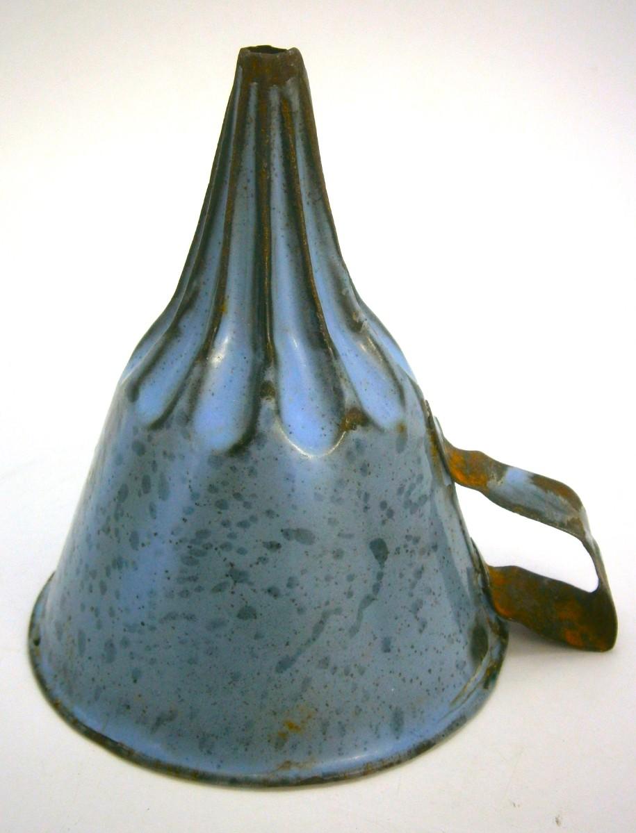 19th Century Graniteware Funnel, 4 in. tall, enamel over tin.