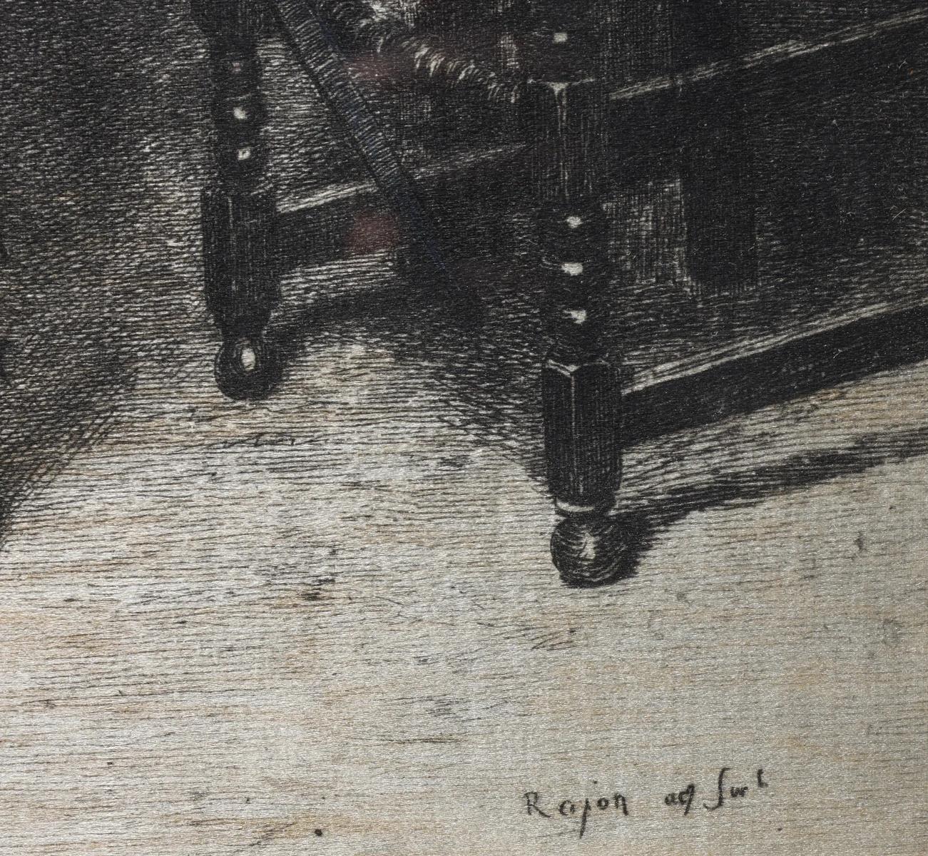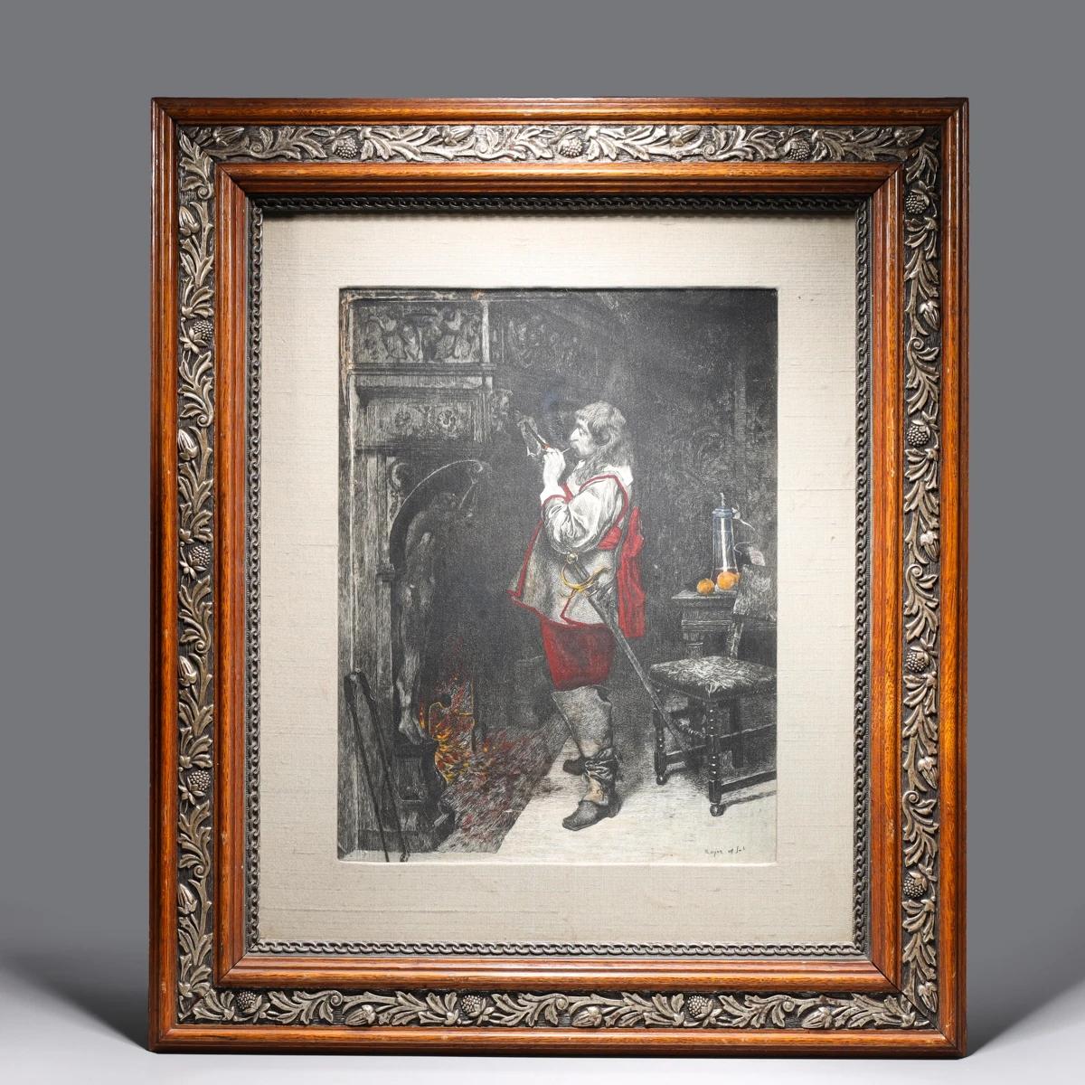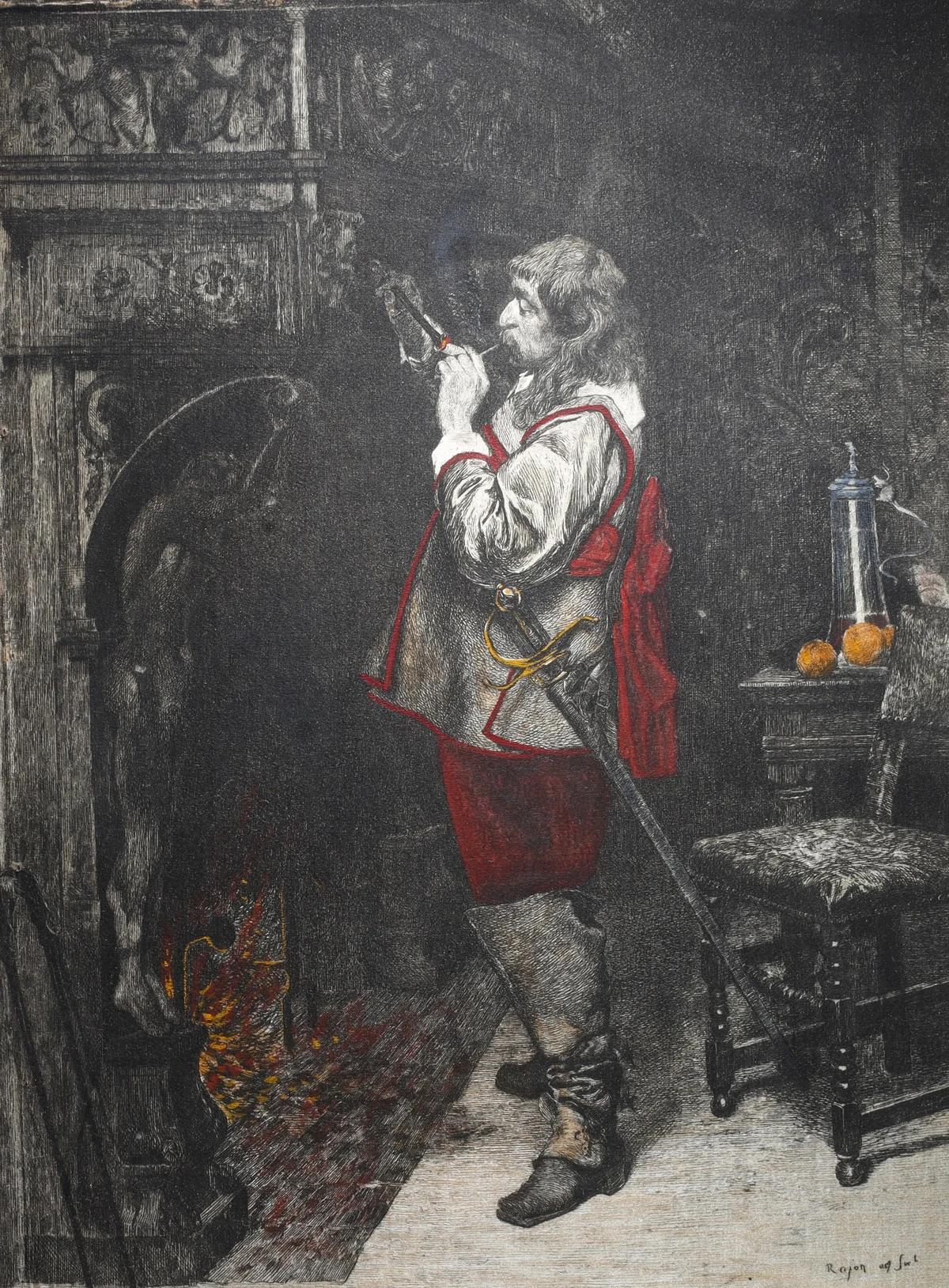 19th Century Hand Colored Etching on Silk by Paul Adolphe Rajon - "Petrucio"