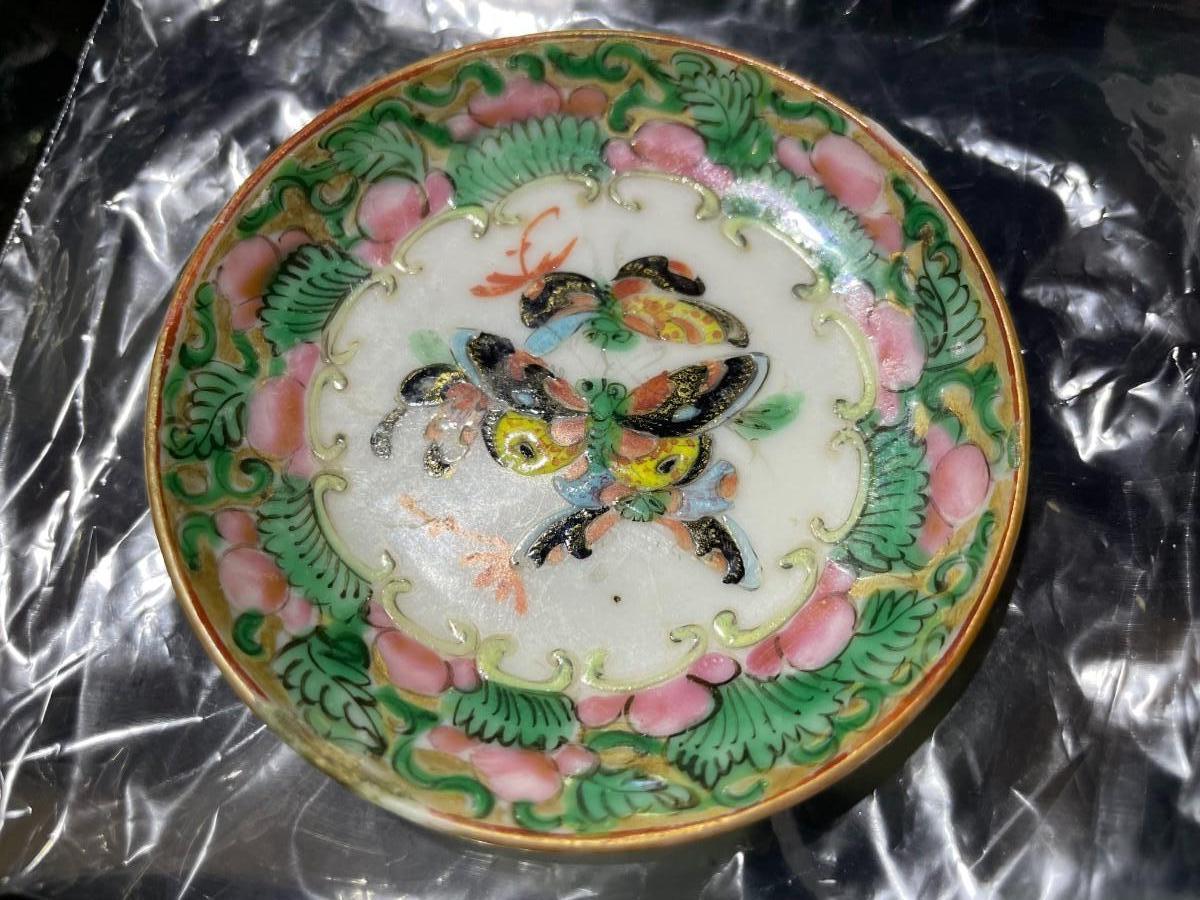 19th Century Hand Painted Chinese Mini Butterfly Plate 3" Diameter in Good Preowned Condition. $5 Domestic Shipping.