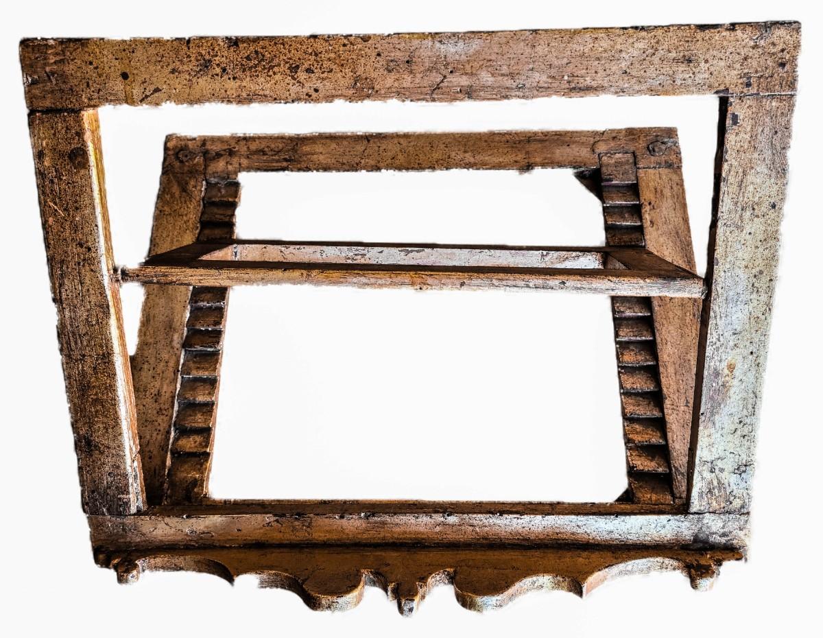A rare 19th Century Italian carved and gilded table Lectern, an antique spruce wood bookstand or music stand carved at the base and footed. This antique reading bookstand is adjustable, can tilt of about 45 degrees. This antique table lectern is much more than a desk accessory, it will add an impressive, sacred atmosphere to any room. Rectangular shape resting on four legs, light and easy to move in any positions or in /any room. Gild has red spots either touches made in purpose or repainted. On the back has the old label with the title and the price of $100. Measures 15" X 11 1/2" x 4".
