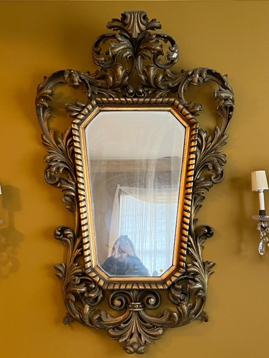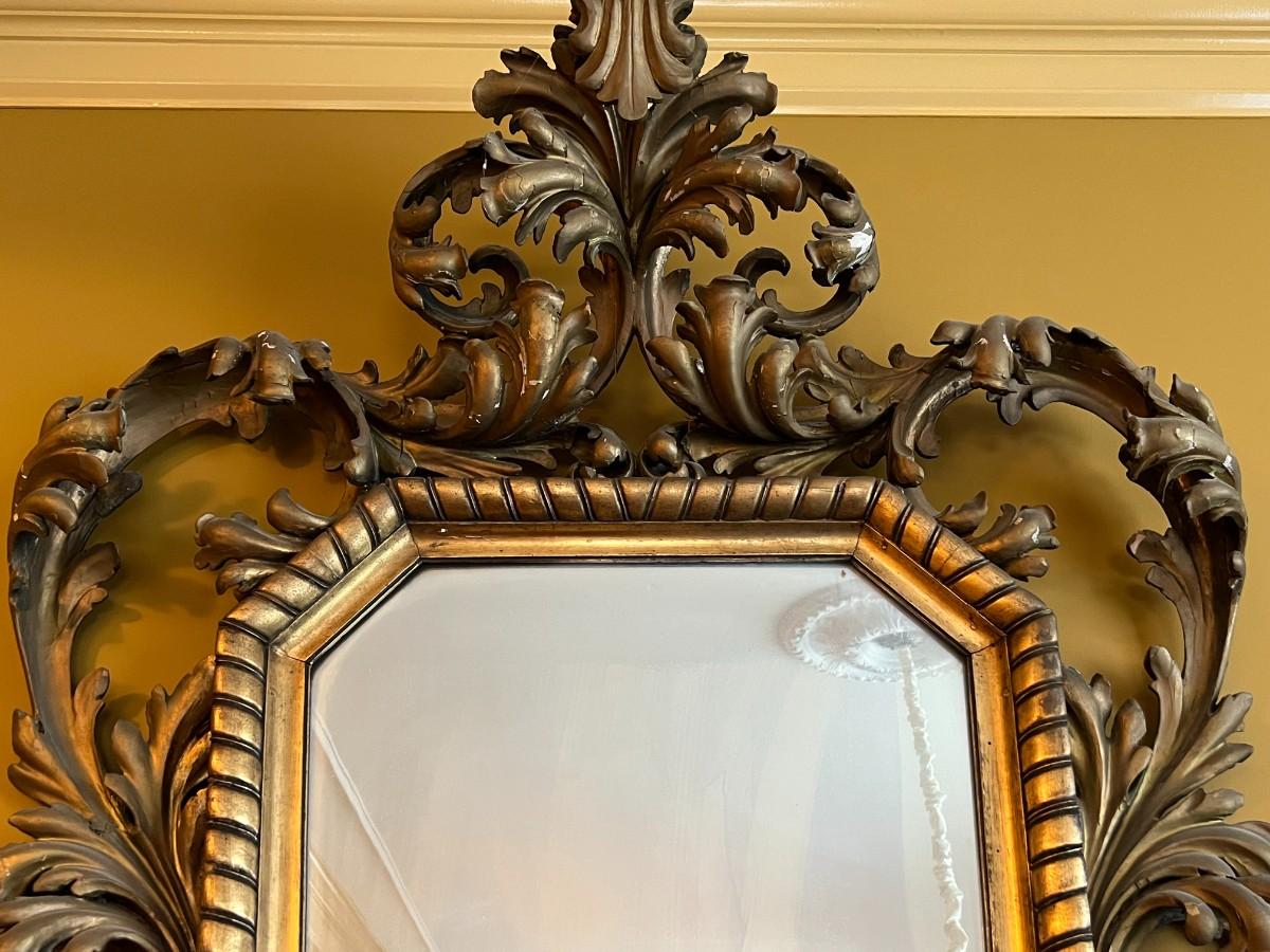 19th Century Large Florentine Baroque Style Giltwood Carved Mirror