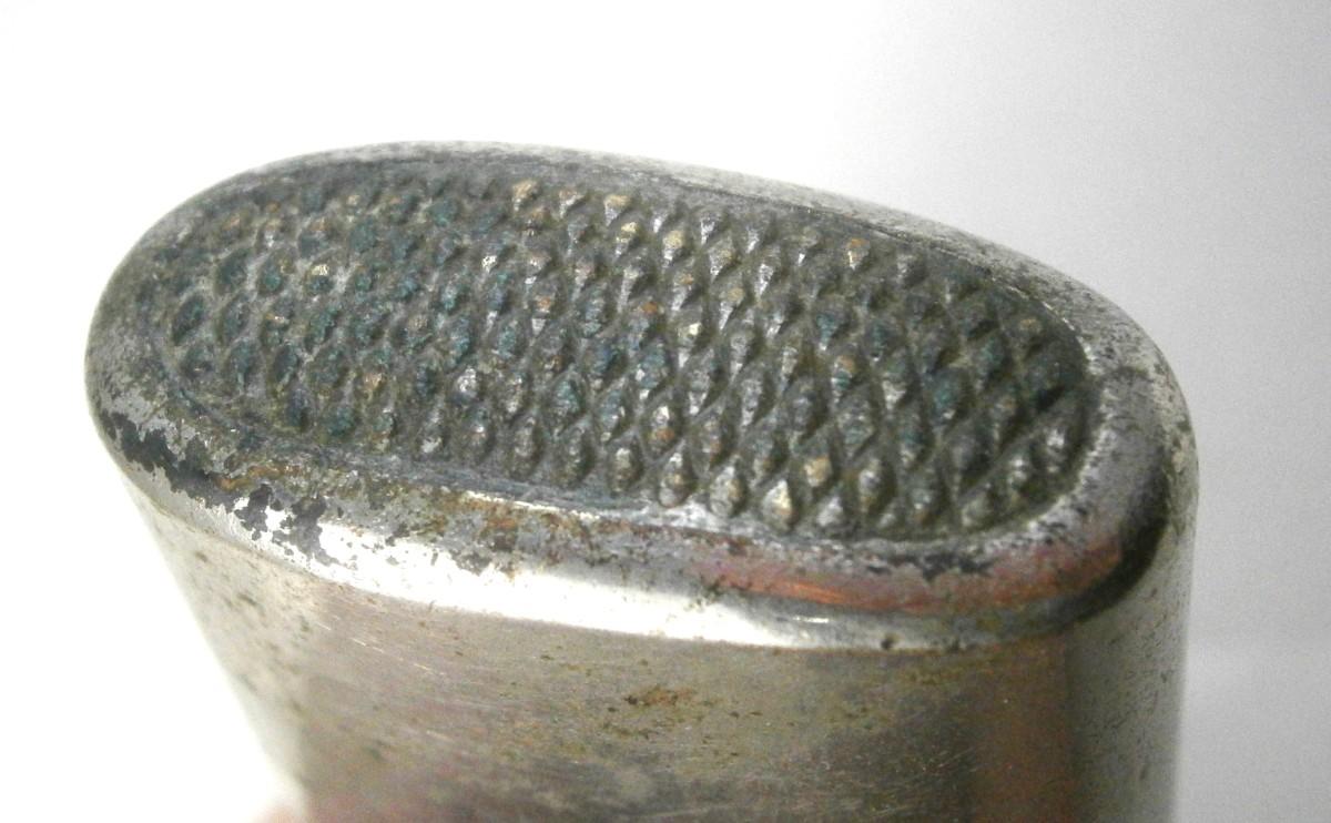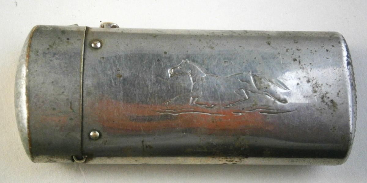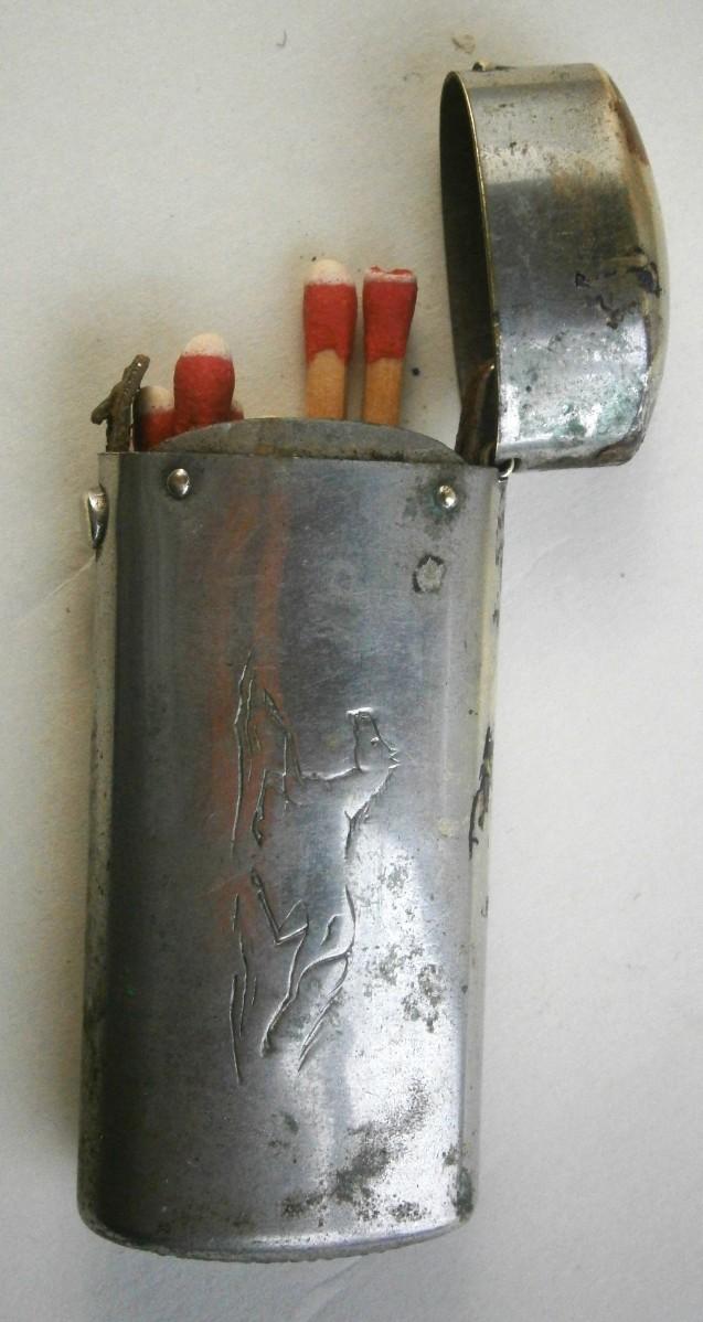 19th Century Matchsafe with Horse Motif, 2 3/4 in. tall, nickel plated brass. Matches not included.