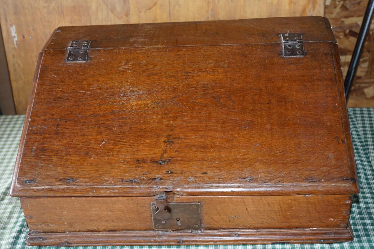 19TH CENTURY OAK COUNTER TOP SLANT TOP WRITING DESK W/ LIFT LID