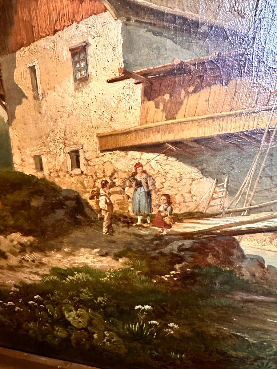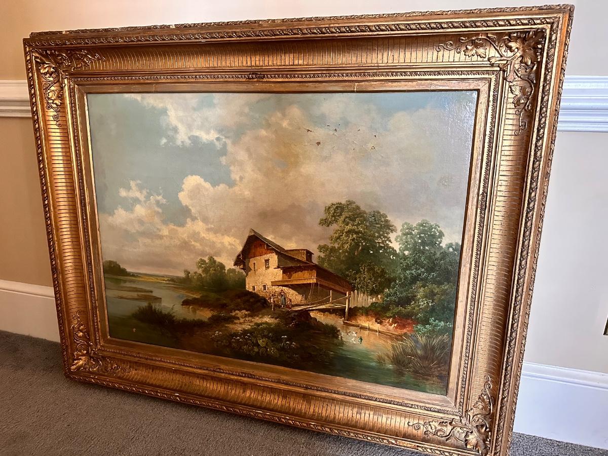 Oil on Canvase Landscape Painting Framed 40x56 c 1870 Josef Theurieah