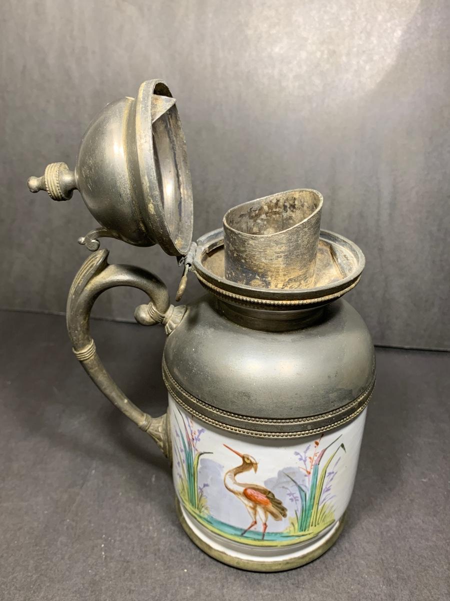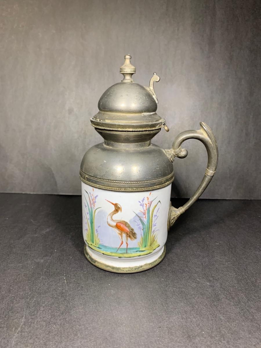 19th Century Pewter & Handpainted Enamelware MilkJug