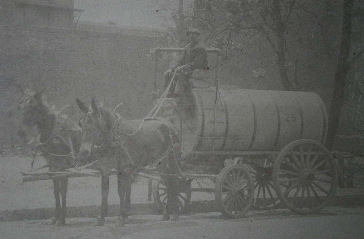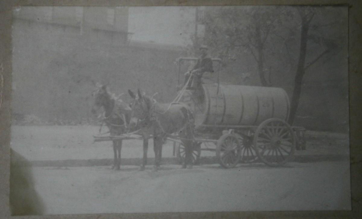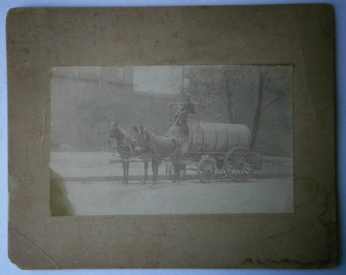 19th Century Photograph of a Mule Pulled Water Wagon,
