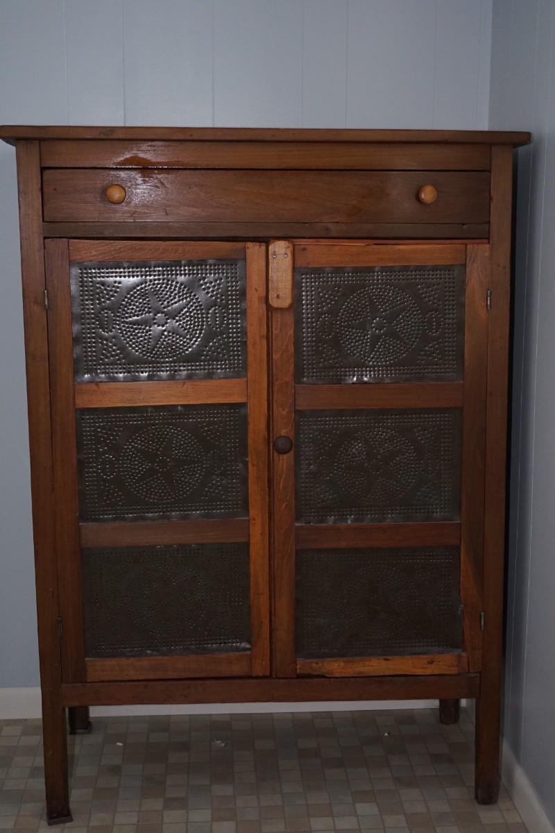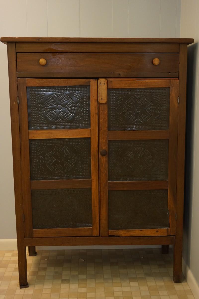 19TH CENTURY PIE CABINET W/ PUNCHED TIN OF STARS ALL ORIGINAL