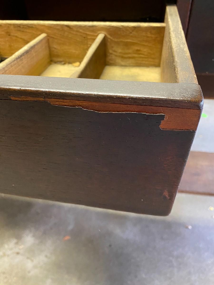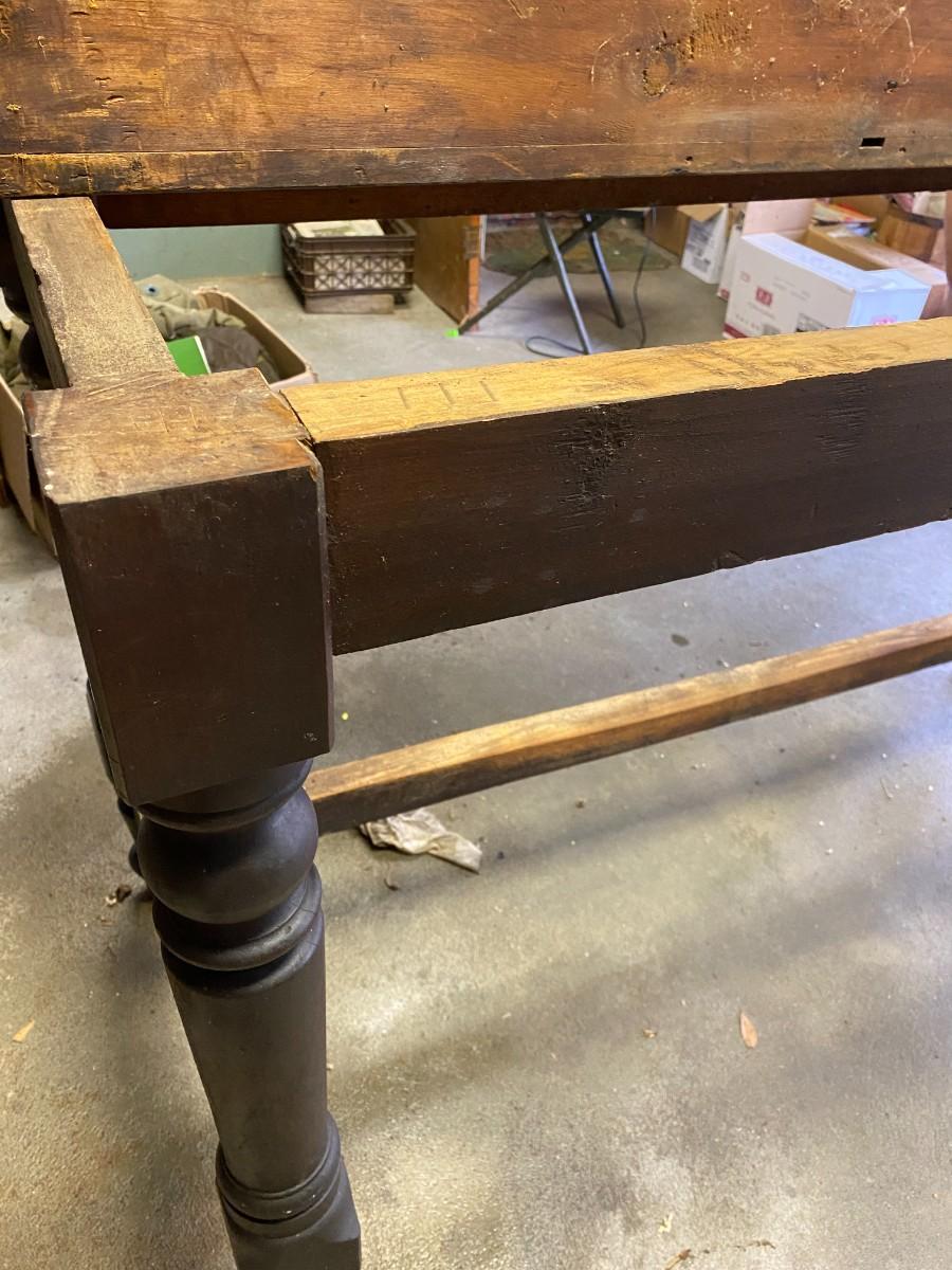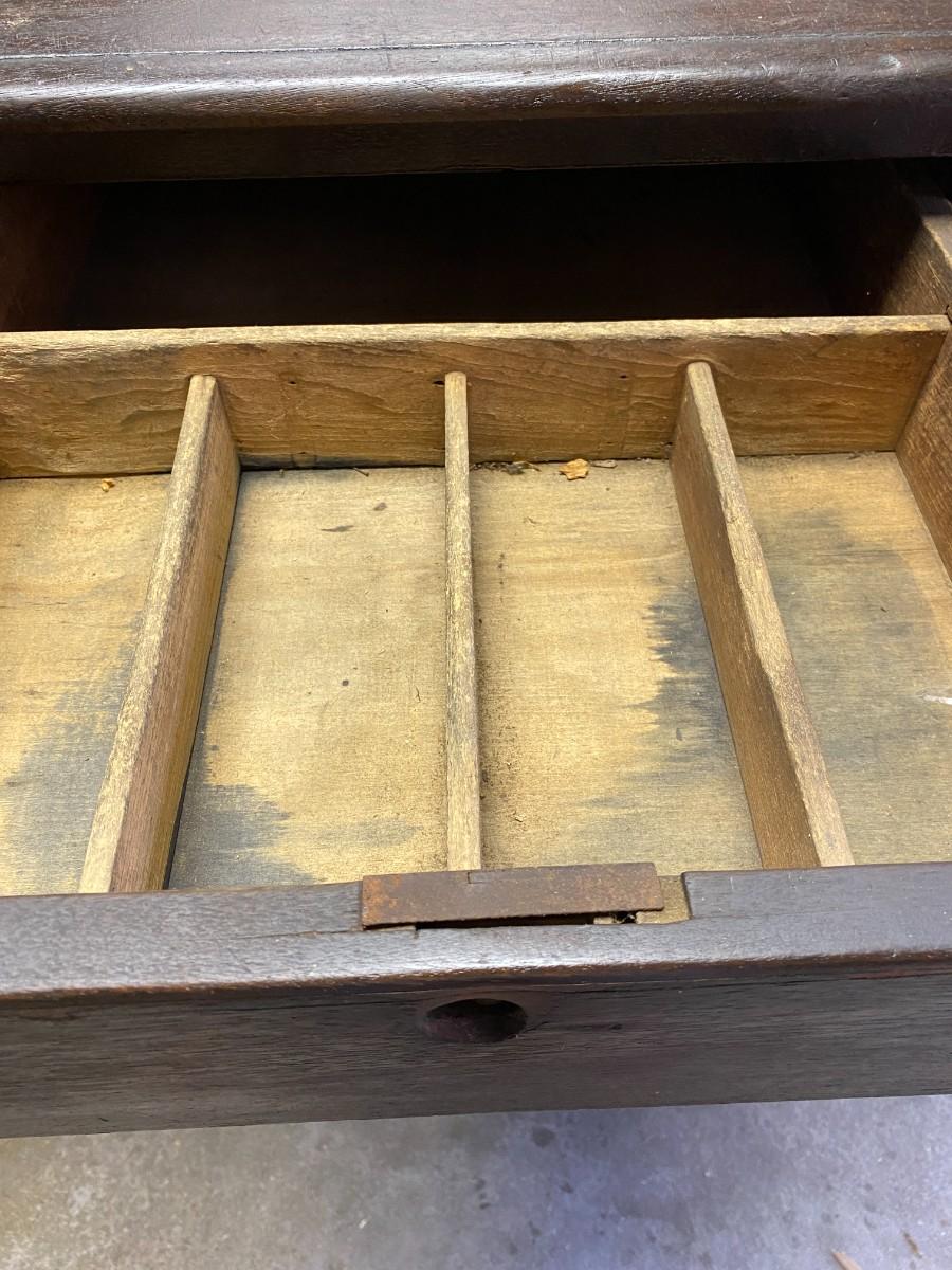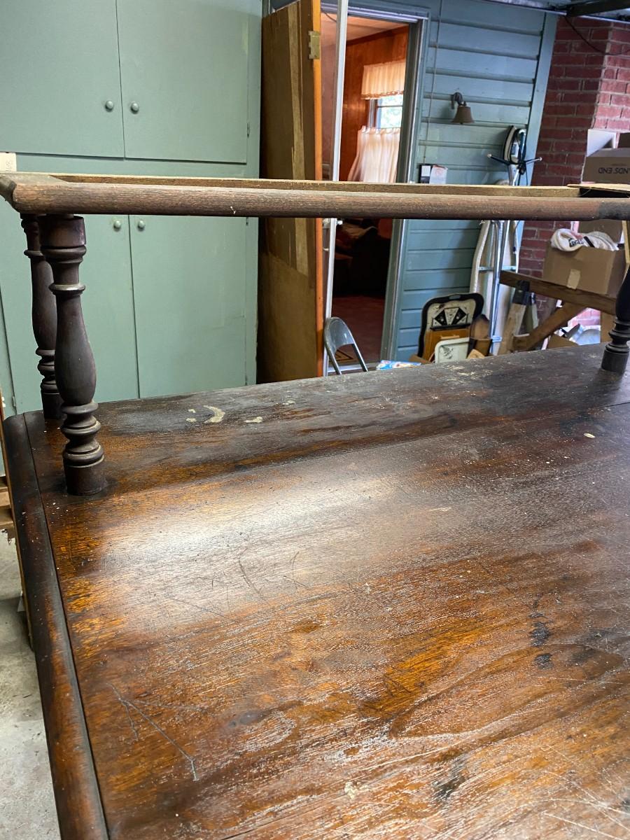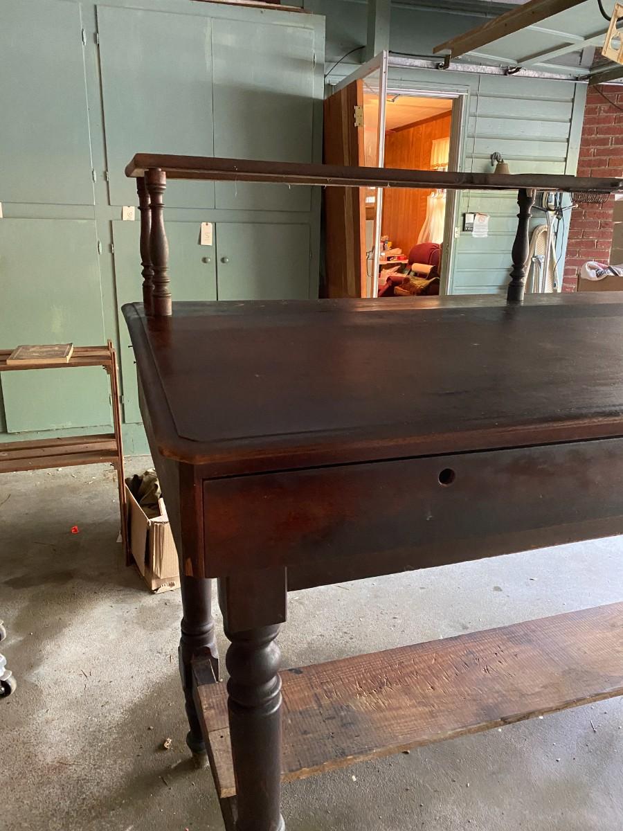 LOT 190 Early southern Plantation Desk Easy to Move, Top is separate from base, Mixed Woods, Poplar Drawer Bottoms, Possible Mahogany Top, 3 Drawers 72wx32dx47t w/o shelf 58 tall w/ Shelf