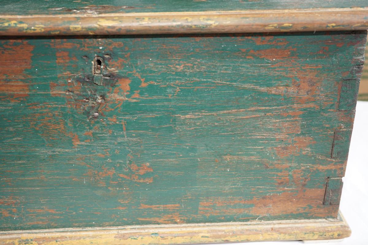 19TH CENTURY PRIMITIVE SM. CHEST ORIGINAL GREEN PAINT LIFT TOP