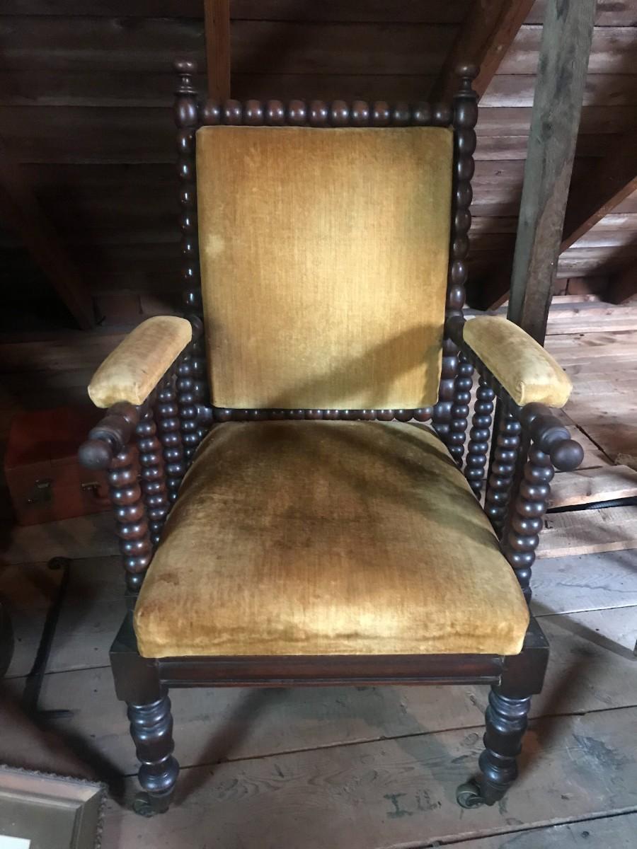 Seat , arms & back were reupholstered in the 1950s - Great condition